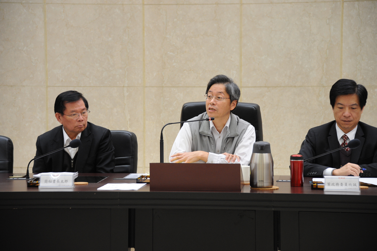 行政院副院長張善政今(16)日主持「104年國土安全政策會報」,在會中聽取相關部會專案報告,張副院長指示相關單位依據最新情勢強化防護整備作為;同時運用管道加強與民眾溝通,強化社會大眾自我防護意識。