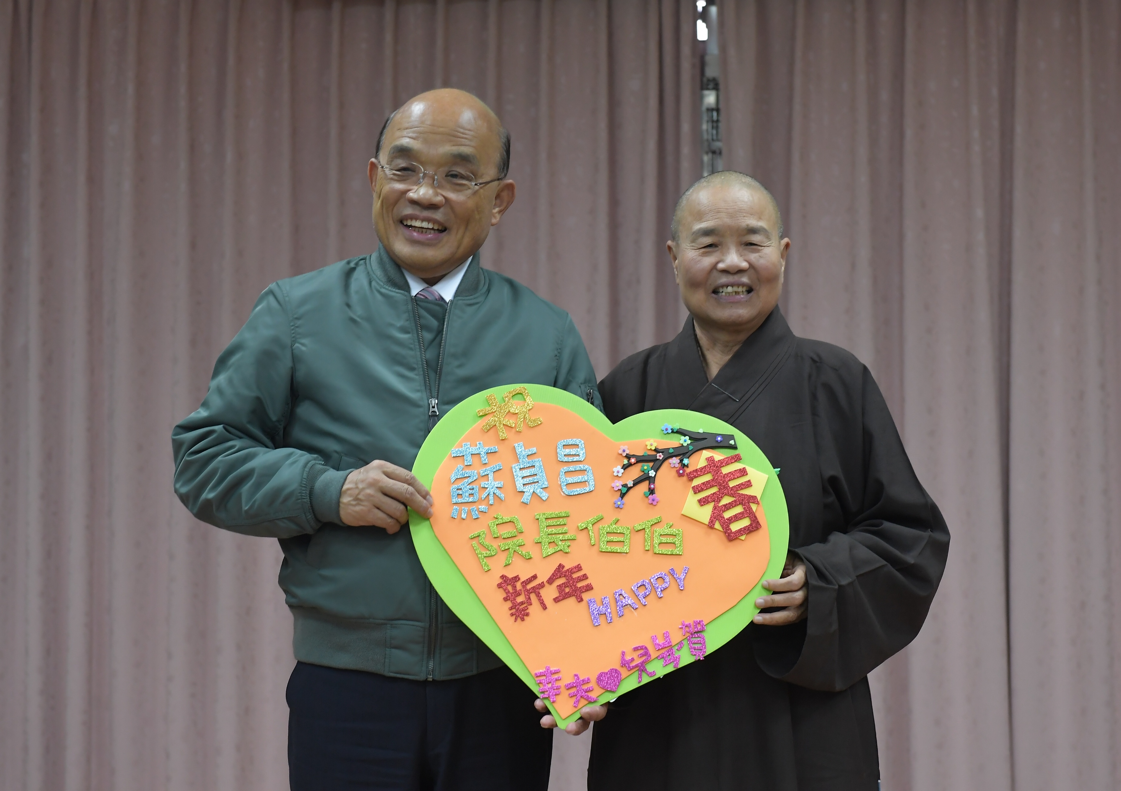 行政院長蘇貞昌今(23)日前往「財團法人宜蘭縣私立佛教幸夫社會福利慈善事業基金會附設幸夫愛兒園」,提前與院童及工作同仁歡度春節。蘇院長呼籲社會各界共同關懷兒少,多給孩童溫暖,使社會更和善,也強調照顧嬰幼兒,政府責無旁貸,相關單位並應多給予民間類似社福團體鼓勵及支持。