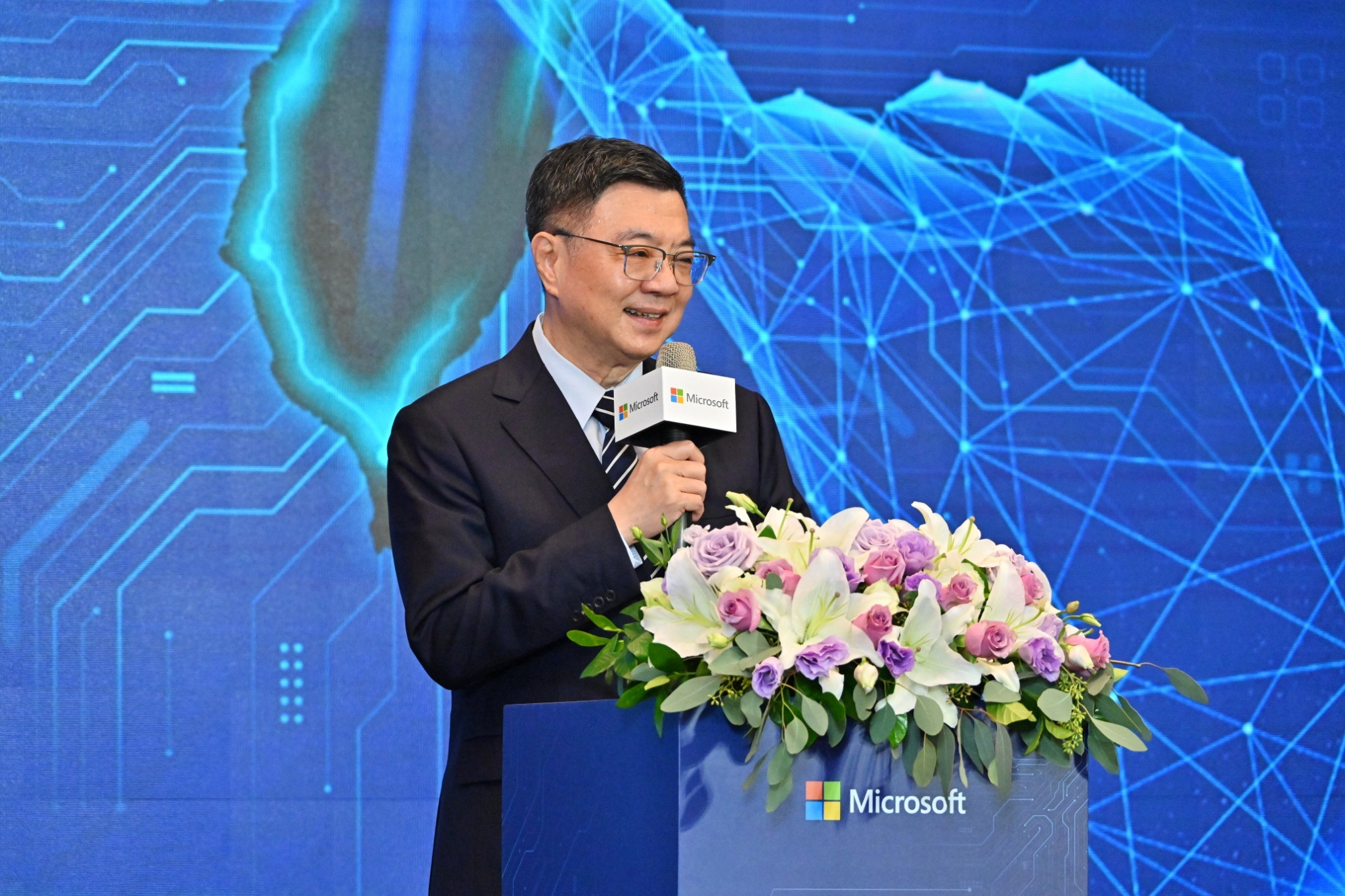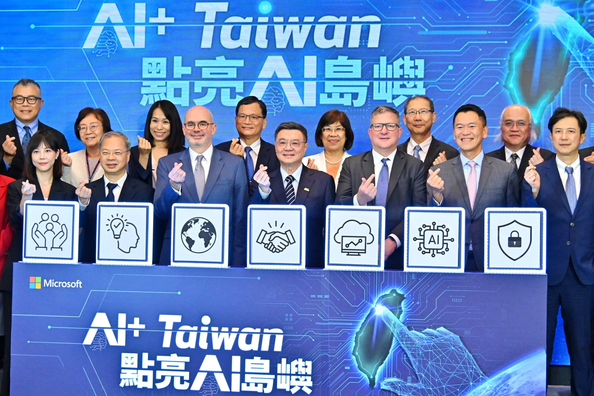 行政院長卓榮泰今(14)日出席「AI+ Taiwan 點亮AI島嶼」記者會時表示,「Microsoft 365資料中心」在臺落地啟用,為全球科技產業重要里程碑,並促進國內產業與世界連結。為打造臺灣成為「智慧科技島」,政府從培育國內數位人才、加強資通安全及穩定產業供電等面向著手,希望此次公私合作為臺灣與其他國際合作奠立一個成功案例,也讓臺灣民眾享受更便捷、更值得信任的科技應用服務。