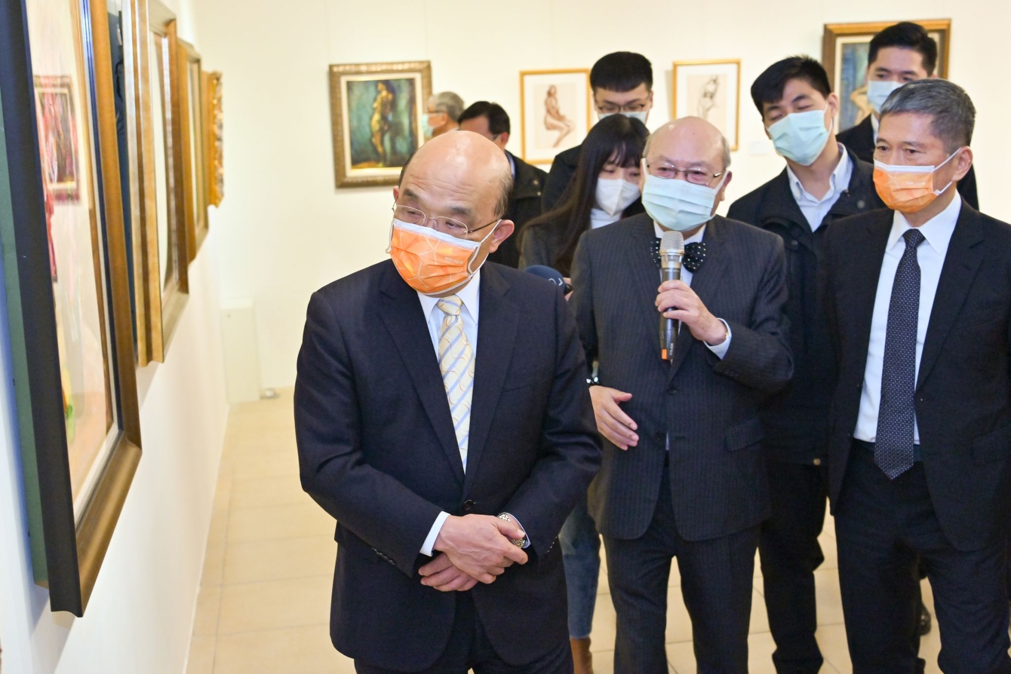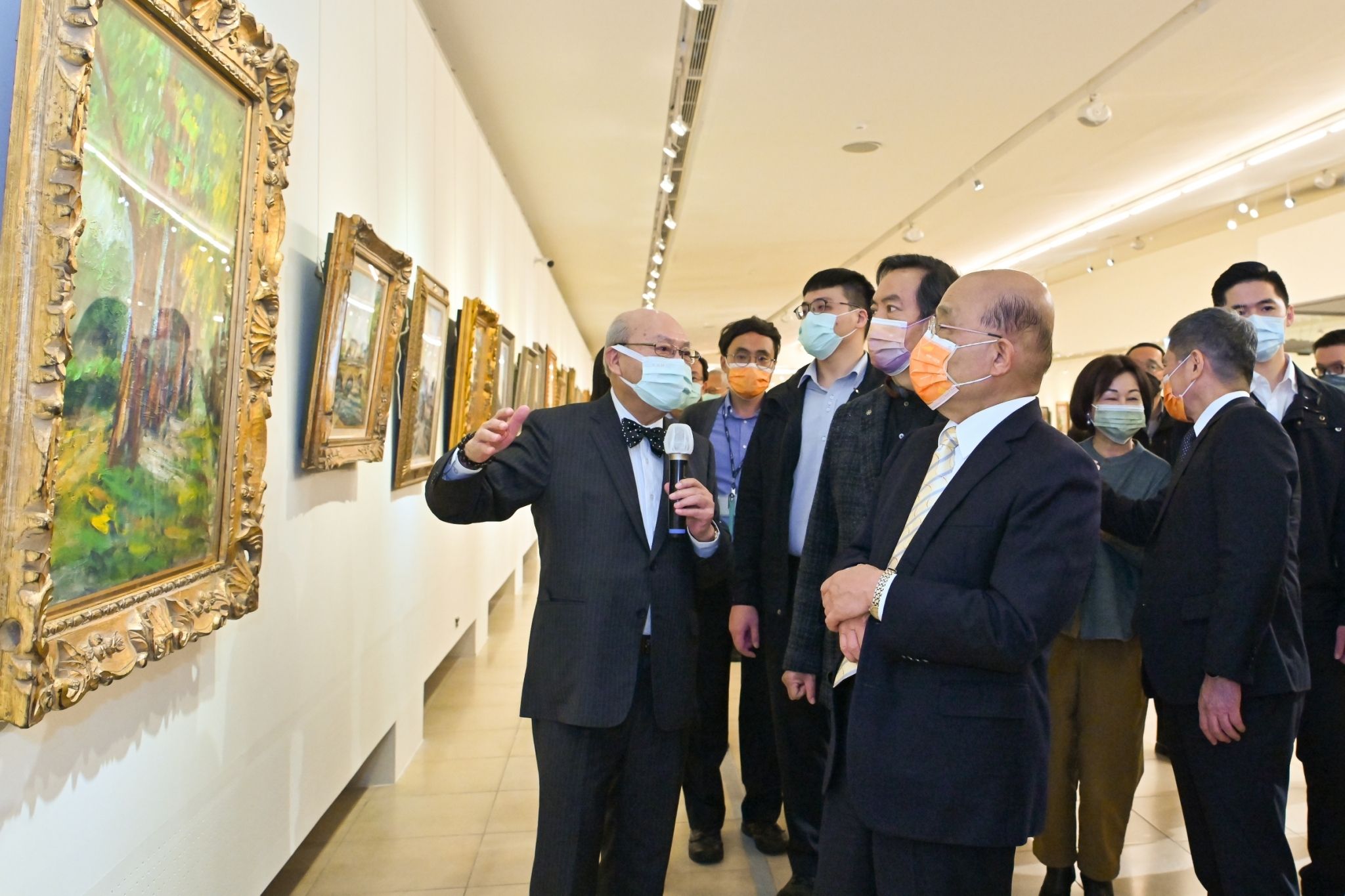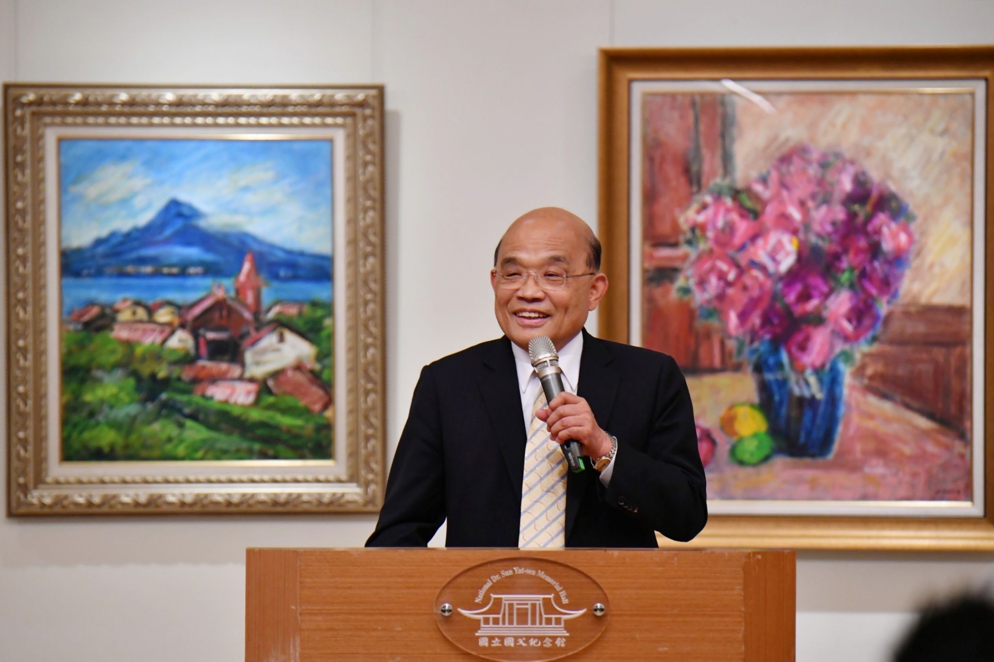 行政院長蘇貞昌今(10)日出席廖武治美術展開幕式時,除祝賀展出成功外,也讚揚廖董事長不僅是一名畫家,更是廟宇文化的經營與保存者,創作更非僅停留在畫布上,而是在社會與國家中作畫,同時也透過畫作讓臺灣廟宇、宗教文化被世界看見,使這項無形資產得以保存。