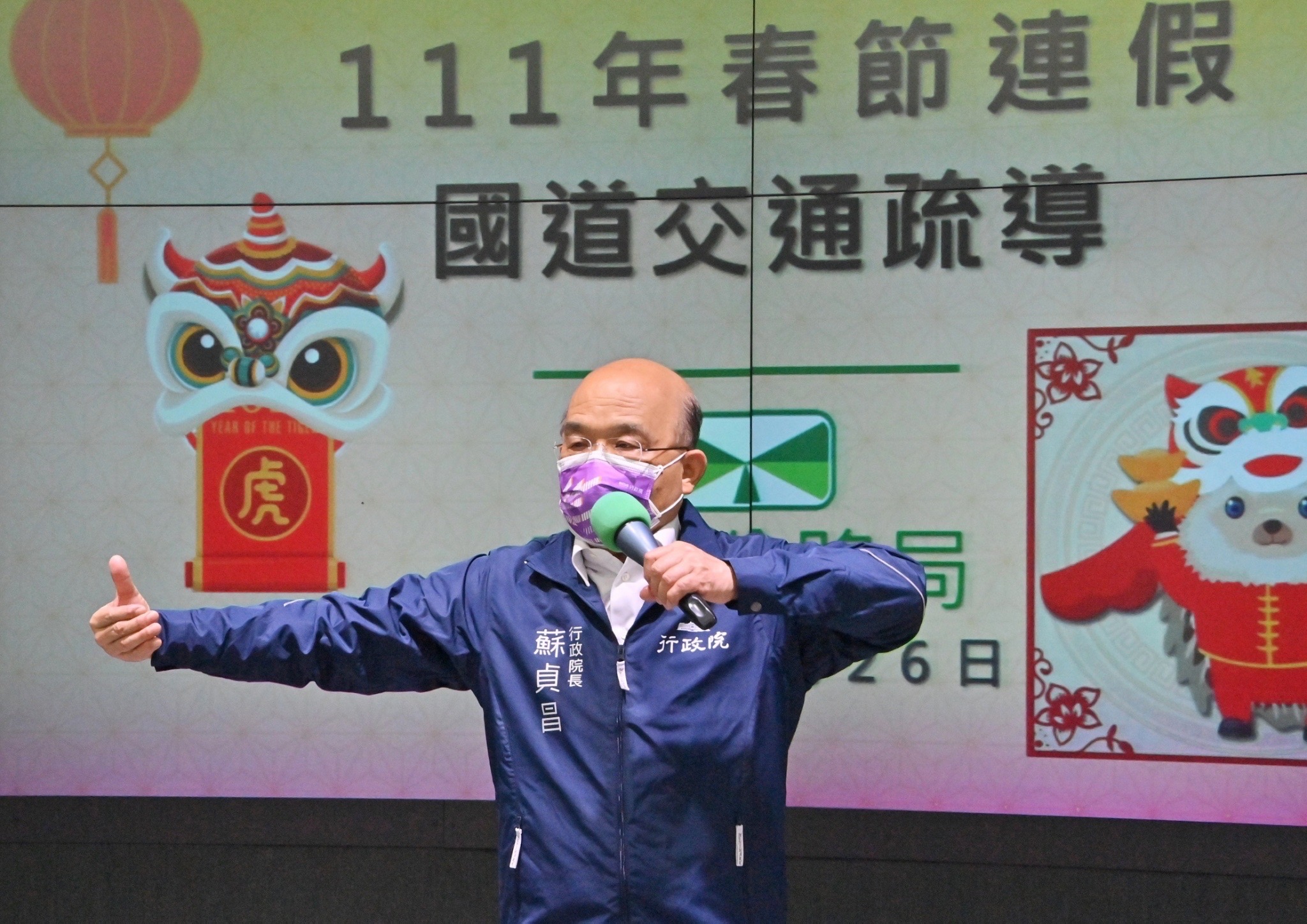 關心春節疏運整備情形,行政院長蘇貞昌今(26)日視察交通部高公局北區交通控制中心,並感謝相關工作同仁及執勤員警的辛勞。蘇院長表示,春節交通疏運整備工作,包括國道空間改善、管理及應變等三大面向,交通部已提前完成改善許多瓶頸路段,讓交通愈發順暢,請持續加強相關營運管理作業,同時也請內政部警政署除保護執勤員警安全、加強勤前教育外,亦須加強路口現場指揮並迅速排除交通事故。在因應疫情方面,院長也請相關單位務必做好防疫應變措施,行政院一定會給予最大支持,讓大家平安過好年。