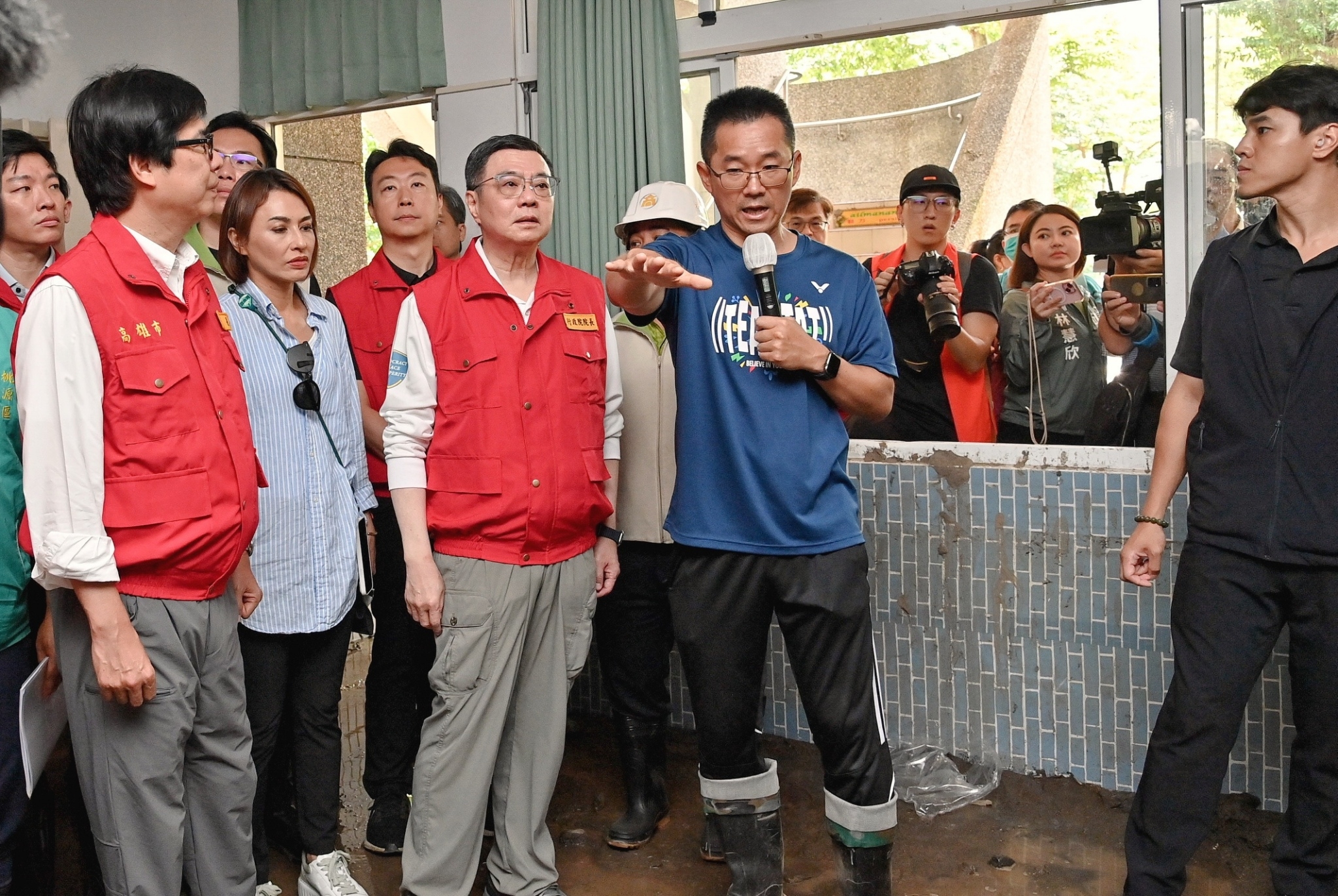 致詞結束後,卓院長與行政院陳世凱發言人、教育部鄭英耀部長、行政院南部聯合服務中心許乃文執行長、謝文斌副執行長、教育部國民及學前教育署彭富源署長、高雄市陳其邁市長、高雄市政府教育局吳立森局長等人,視察校園土石流影響區,以及災損教室、柔道場、學生汛期安置空間。