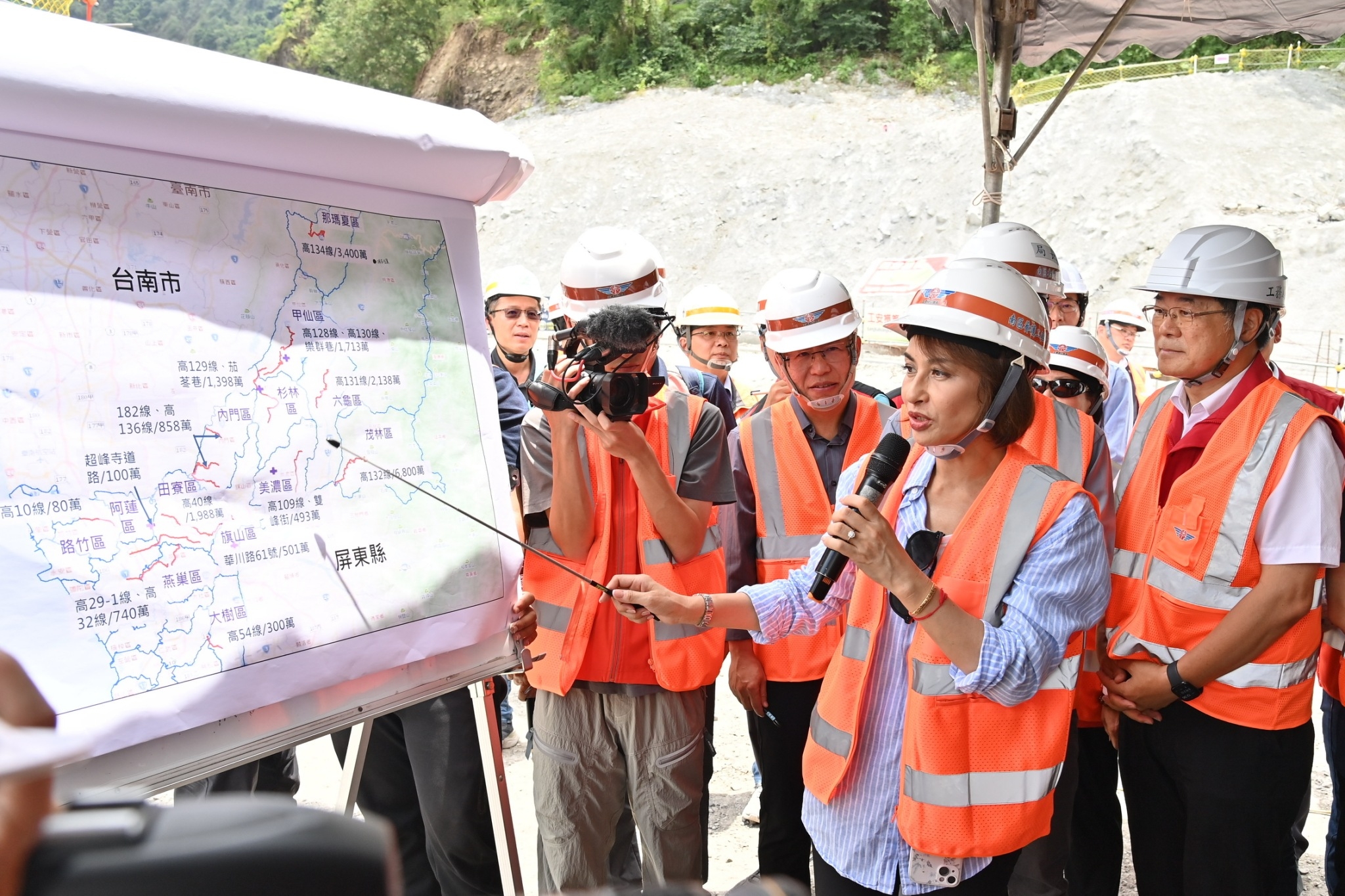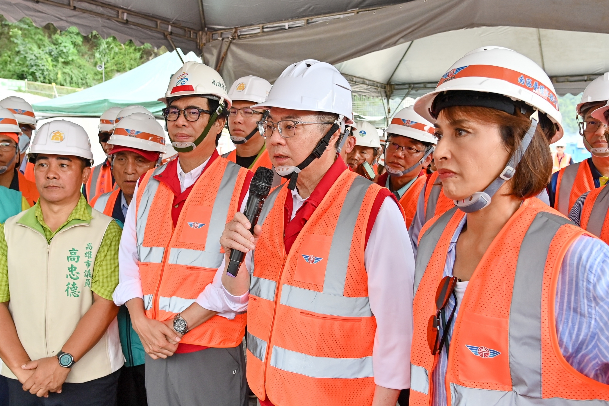 接續,卓院長與行政院陳世凱發言人、行政院南部聯合服務中心許乃文執行長、謝文斌副執行長、交通部陳彥伯次長、經濟部何晉滄次長、公路局陳文瑞局長、水利署王藝峰副署長、高雄市陳其邁市長、高雄市政府工務局楊欽富局長等人,進行現地視察,瞭解明霸克露橋災損狀況。