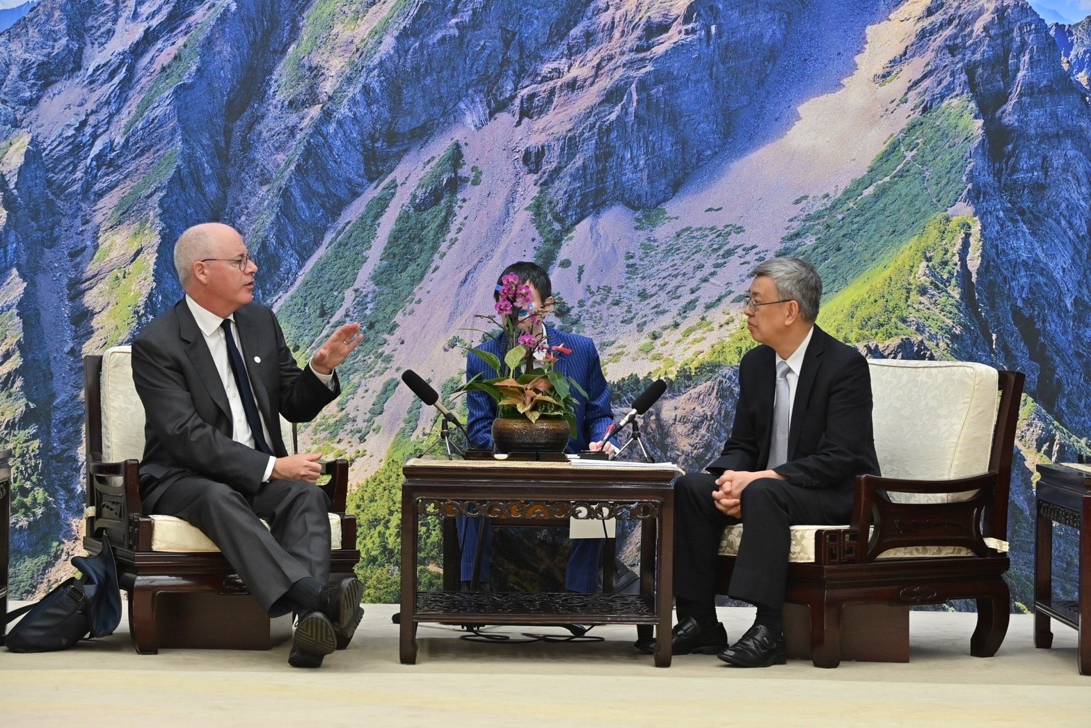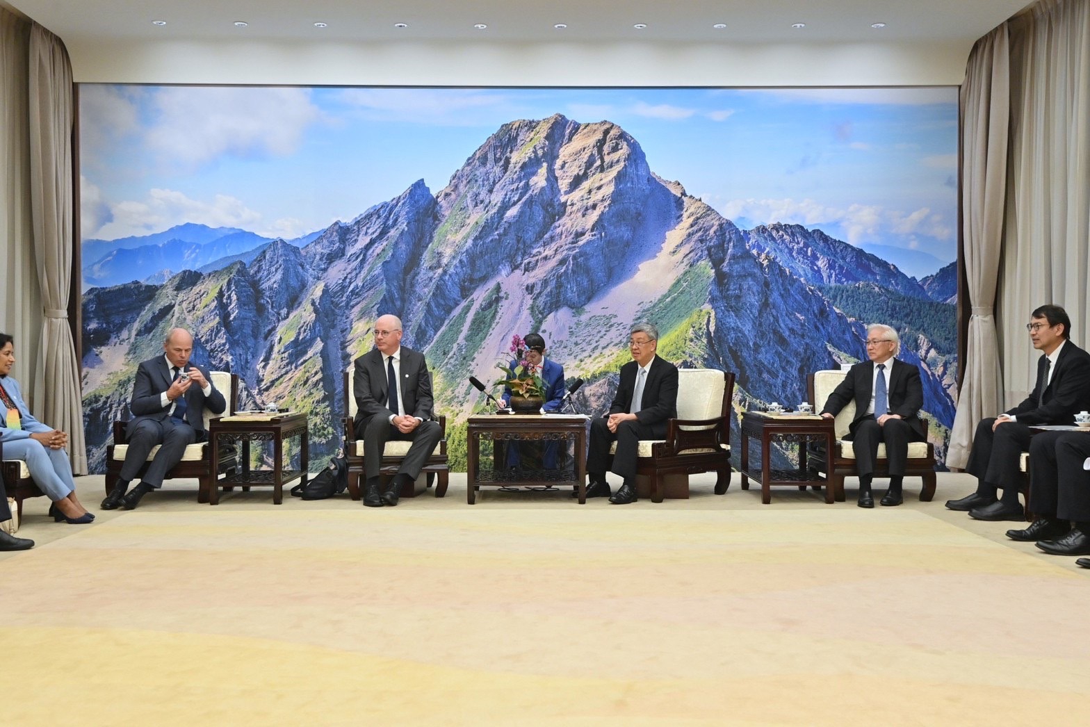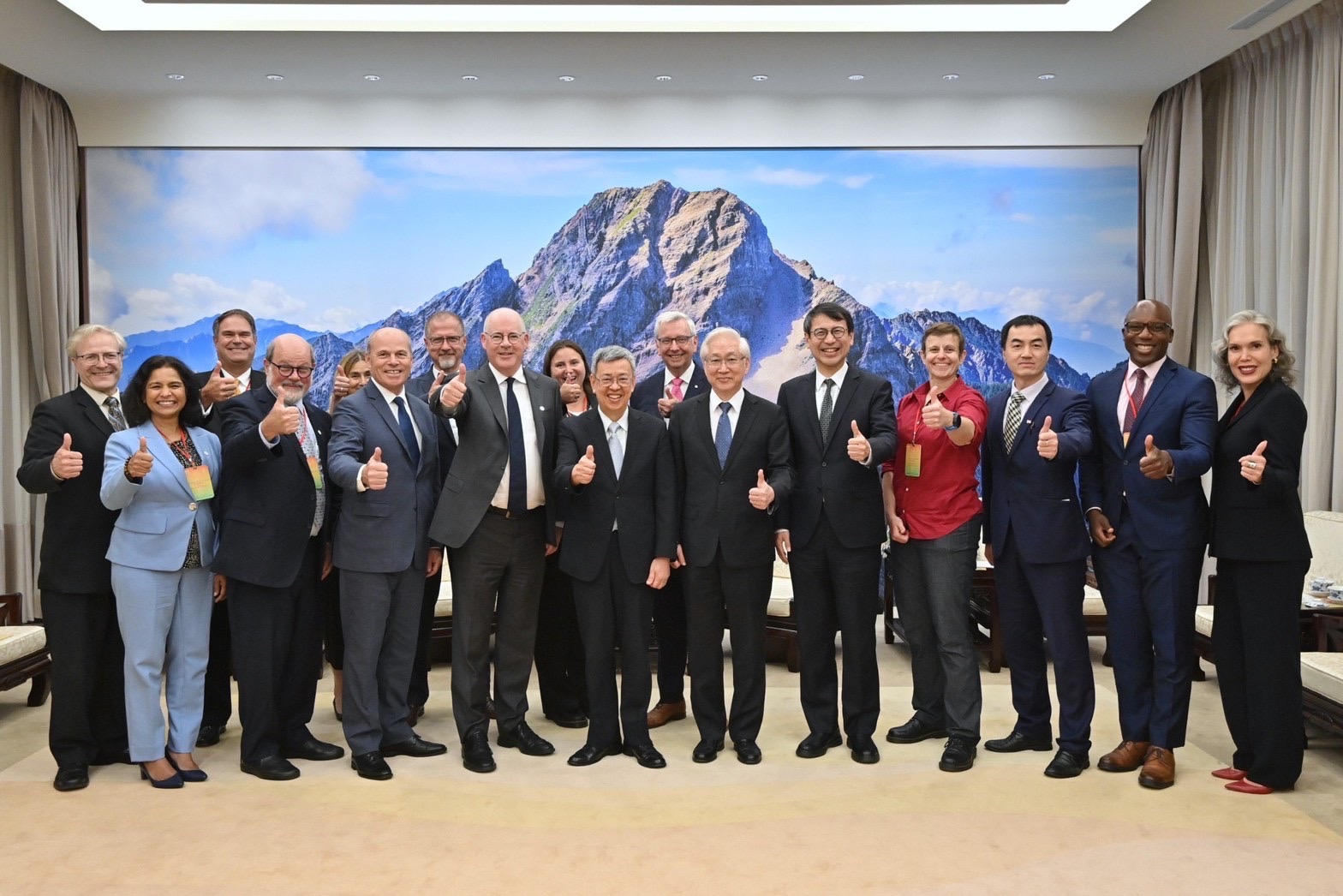 訪賓一行由國科會吳政忠主委及加拿大駐台北貿易辦事處倪傑民(Jim Nickel)代表陪同,前來行政院拜會陳院長,行政院林子倫發言人、數位發展部闕河鳴次長、外交部陳立國次長、經濟部林全能次長也在座。