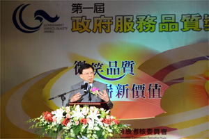 劉院長表示,政府的服務是由人民打分數,不過政府內部也需要管考,有一套內部管考的機制,在這樣的機制中,除了找出問題外,對於做的好的單位要加以鼓舞與獎勵,這正是研考會舉辦「政府服務品質獎」的意義。