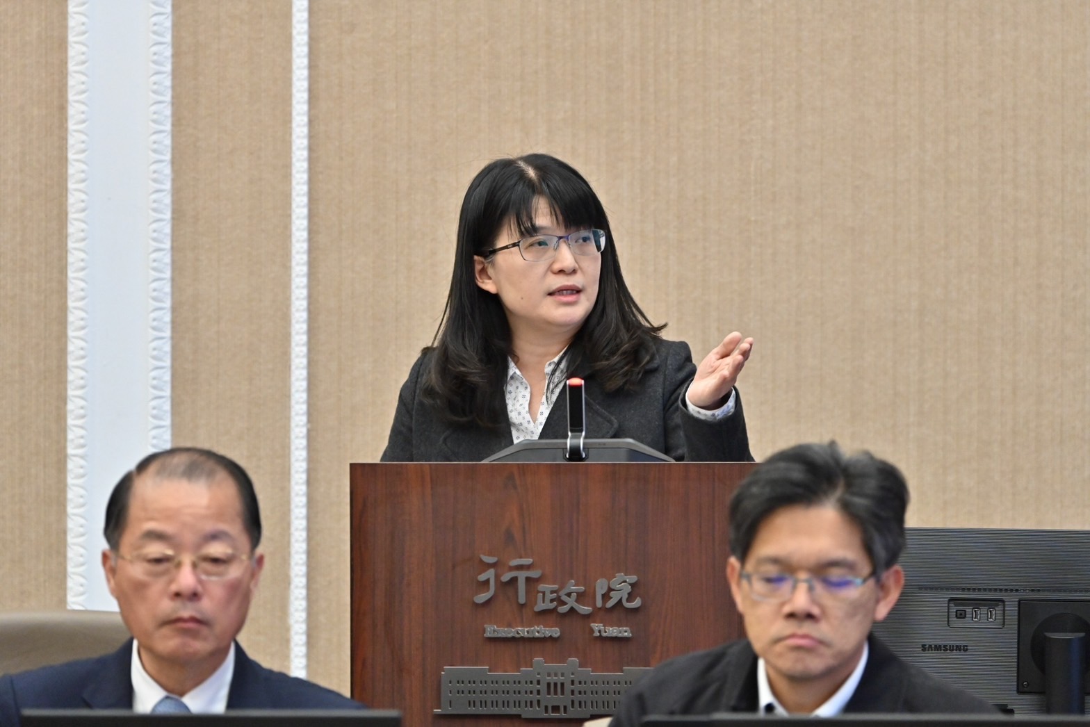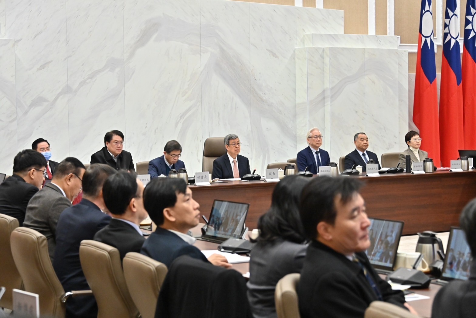 隨後,陳院長致詞時表示,透過會議上播放的「年度動員紀實影片」及「各項績優動員業務頒獎」的獲獎事由,讓人深刻感受到今年在各個部會與地方政府共同努力下,動員準備工作日益精進,也使我國整體防衛能力逐步提高。院長特別感謝各單位所付出的辛勞與努力,並期勉大家持續精進。院長說,今日召開會議,除了檢討今年實施動員工作的總結外,更是後續優化及引導動員工作非常重要的依據,請各與會機關務必重視,讓我國「全民防衛動員運作機制」更趨完備,共同守護國家及人民的安全。