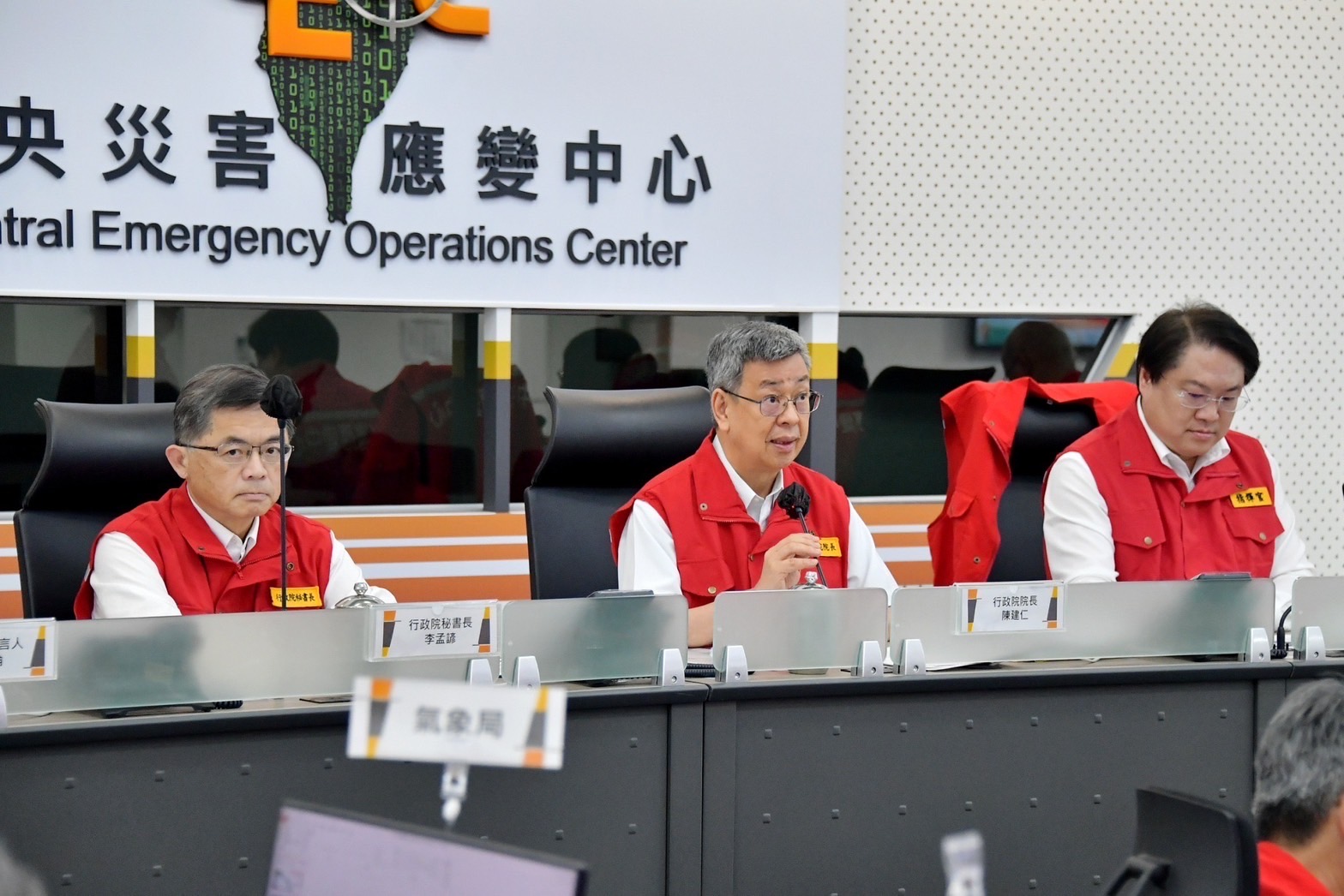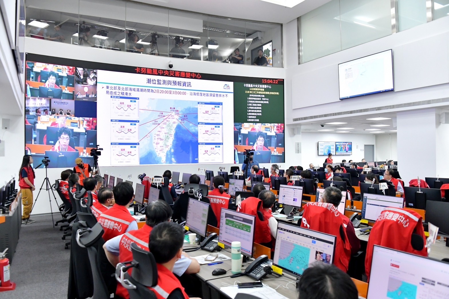 此行,陳院長抵達中央災害應變中心後,首先聽取情資研判組、災情監控及搜索救援組、交通工程組、水電維生組、農林漁牧組、疏散撤離組報告,並於致詞結束後,分別與宜蘭縣長林姿妙、基隆市長謝國樑、臺北市長蔣萬安、新北市副市長朱惕之等4縣市地方正副首長視訊連線,瞭解地方因應本次颱風的整備情形,並感謝地方政府與行政團隊一起努力,希望共同將卡努颱風造成的災害減到最少,確保民眾身家安全。