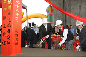 吳院長說,宜蘭縣內風景秀麗,有龜山島、武荖坑及蘭陽平原諸多景點,吸引國內外觀光客,今天動土的側車道延伸工程,在縣政府、縣議會與在籍立法委員合作爭取下得以順利興建,相信宜蘭縣在府、會及立委的合作下,將有更寬廣的發展空間。
