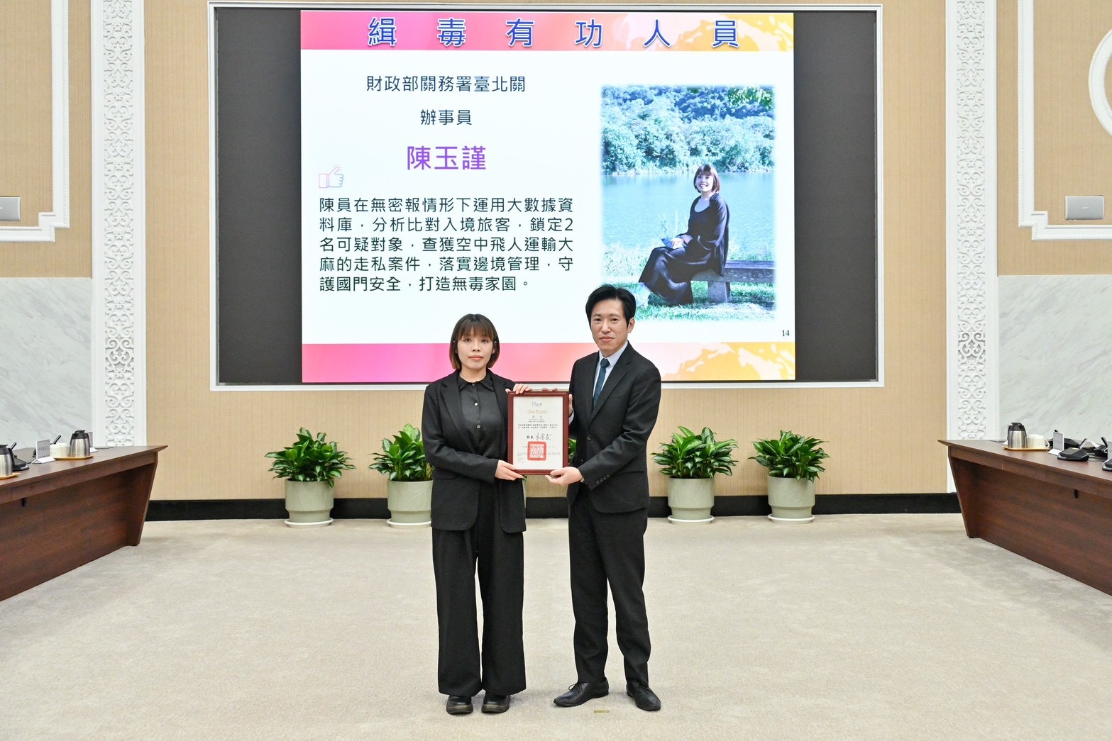 張秘書長於會前頒獎表揚「第13波安居緝毒專案及重大緝毒案件」20位有功人員,並於致詞時表示,卓榮泰院長上週出席「114年行政院模範公務人員頒獎典禮」時強調:「每一位公務員都是模範,而得獎者更是模範中的典範」。而今日除了接受表揚的20位有功人員之外,還有更多第一線優秀的緝毒人員,他也請臺灣高等檢察署與六大緝毒系統的首長們,對於今日未能接受表揚的英雄們從優獎勵,以鼓勵所有辛苦的夥伴們能夠持續堅守崗位,守護國人健康及每一個家庭的安全。