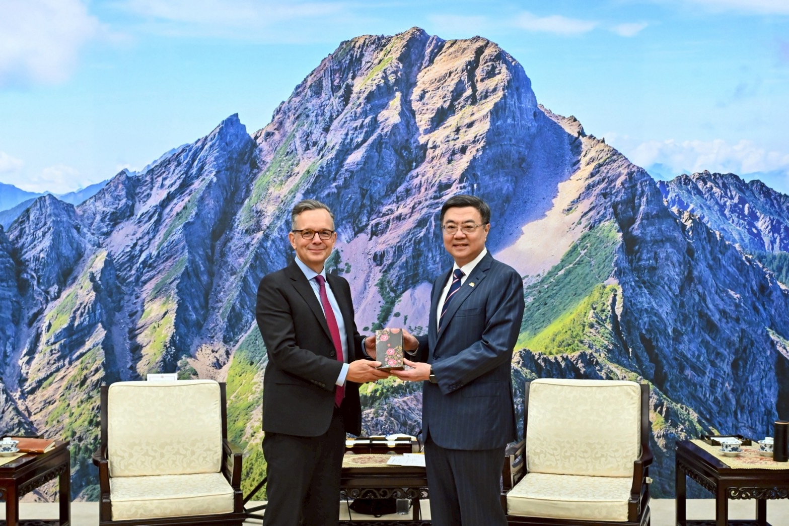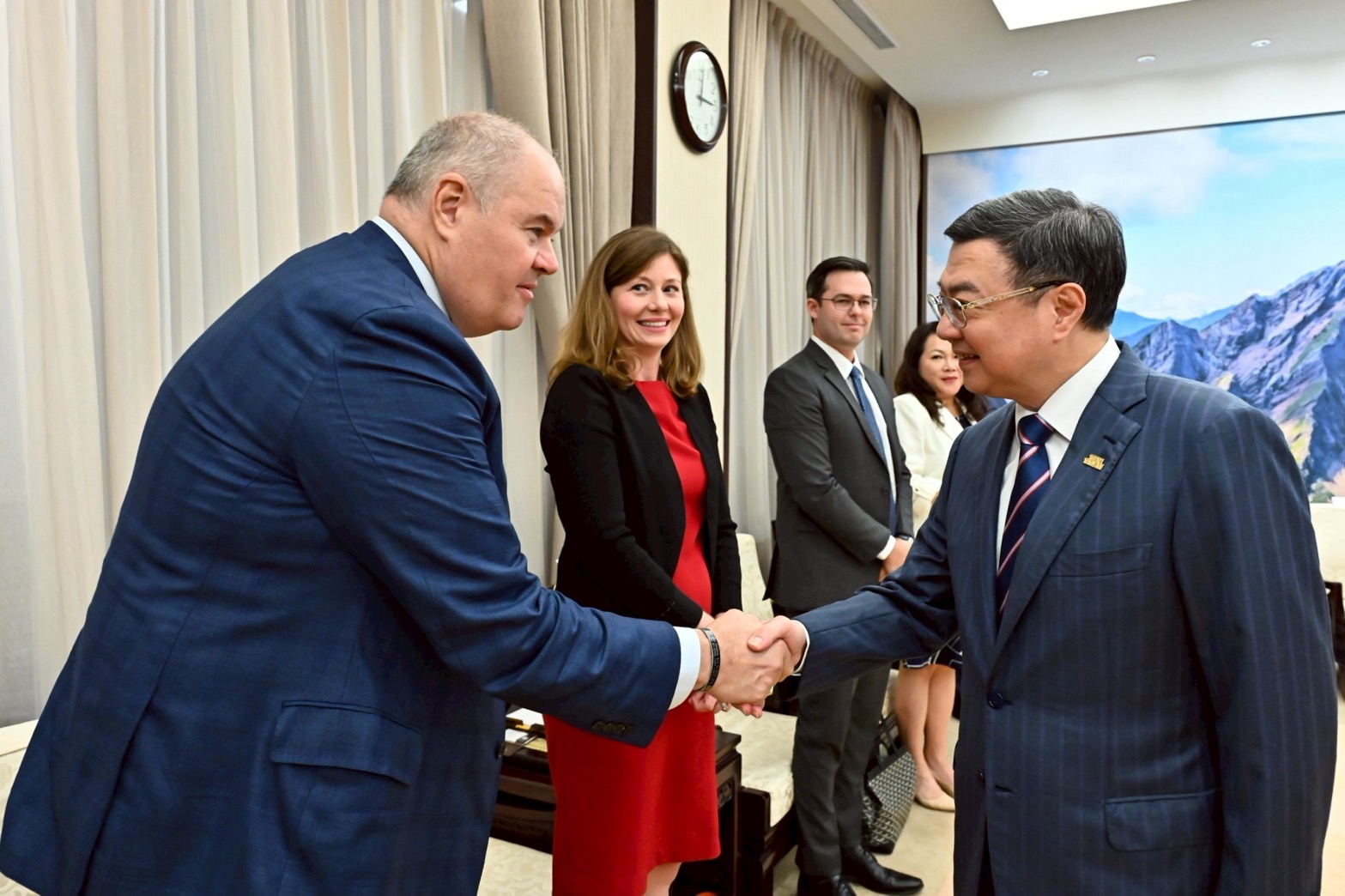 訪團一行由外交部陳明祺次長陪同,前來行政院拜會卓院長,行政院張惇涵秘書長、李慧芝發言人、經濟部何晉滄次長、國家發展委員會詹方冠副主委、國家科學及技術委員會林法正副主委也在座。