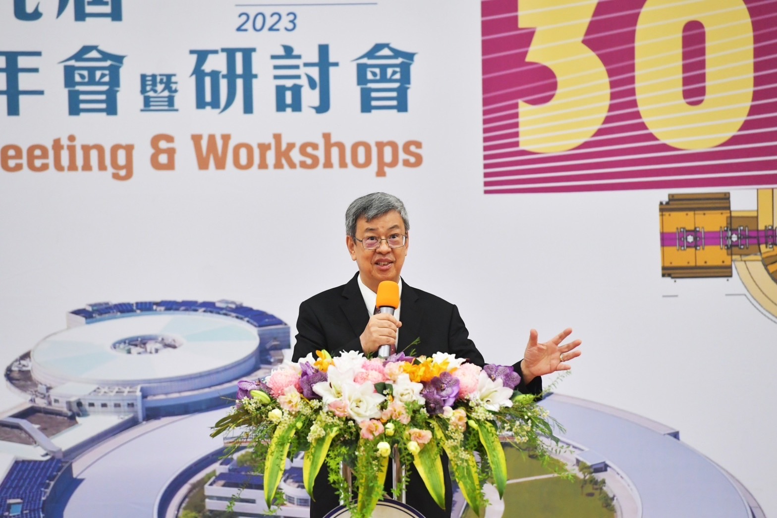 行政院長陳建仁今(23)日前往新竹市出席「國家同步輻射研究中心光源啟用30週年慶」時表示,臺灣第一座同步加速器「臺灣光源」自1993年啟用至今已30年,為臺灣同步加速器及科學發展奠定厚實基礎。他要感謝國輻中心長期致力發展先進加速器技術,積極與國際學術研究機構展開許多優質的合作計畫,並期勉該中心未來除持續精進科學研究外,亦能不斷研發新科技並進行跨域整合,有效連結同步輻射的設計及未來應用面,進一步協助產業升級轉型,為人類福祉帶來最好的貢獻。
