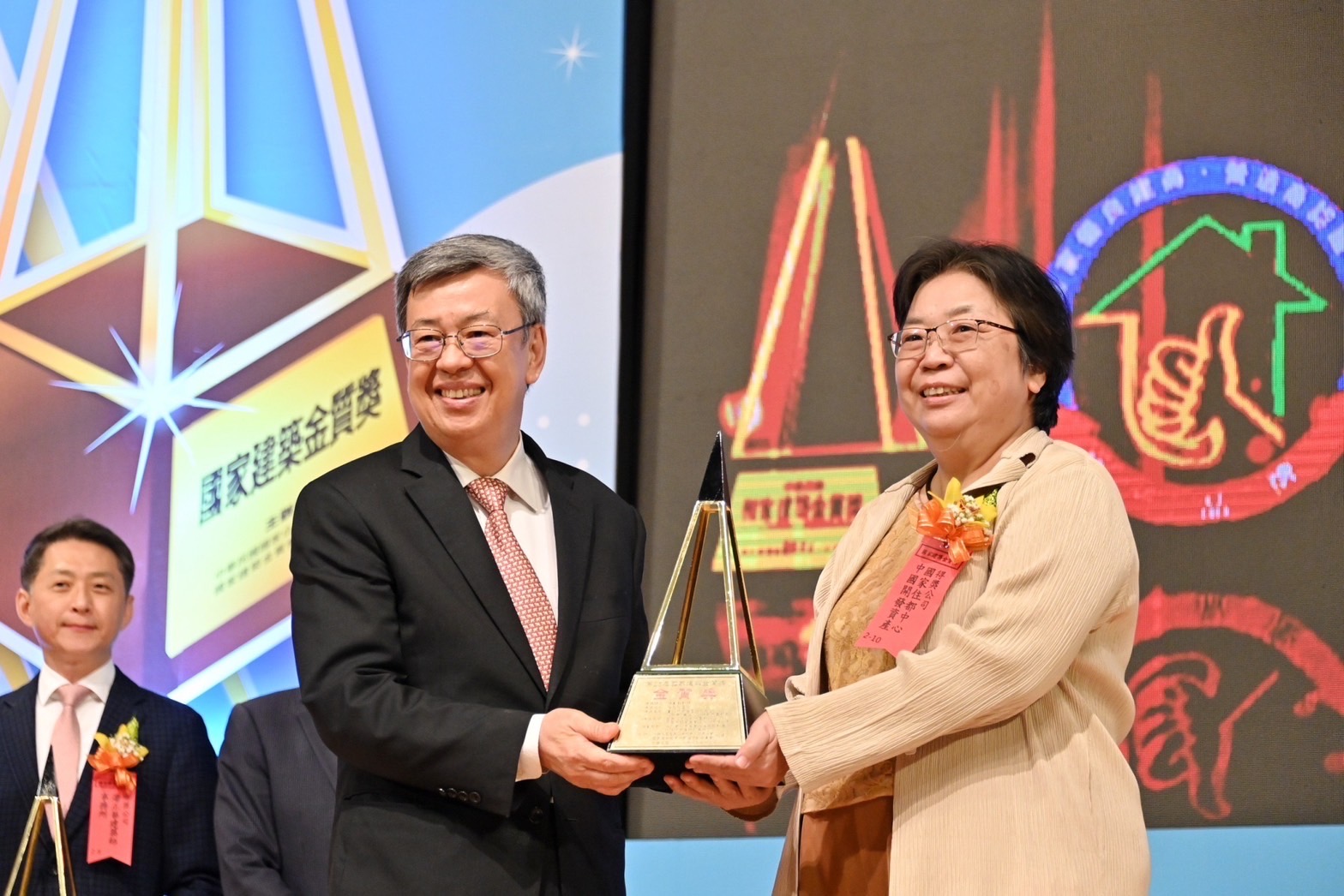 陳院長蒞臨會場後,首先欣賞「宋坤傳藝」擊鼓開場表演,並觀看「國家建築金質獎」評審過程及「規劃設計類」獎項簡介短片。致詞結束後,院長逐一頒發國家建築金質獎「規劃設計類」予38位得獎單位代表,肯定其賦予現代建築新穎的設計理念。