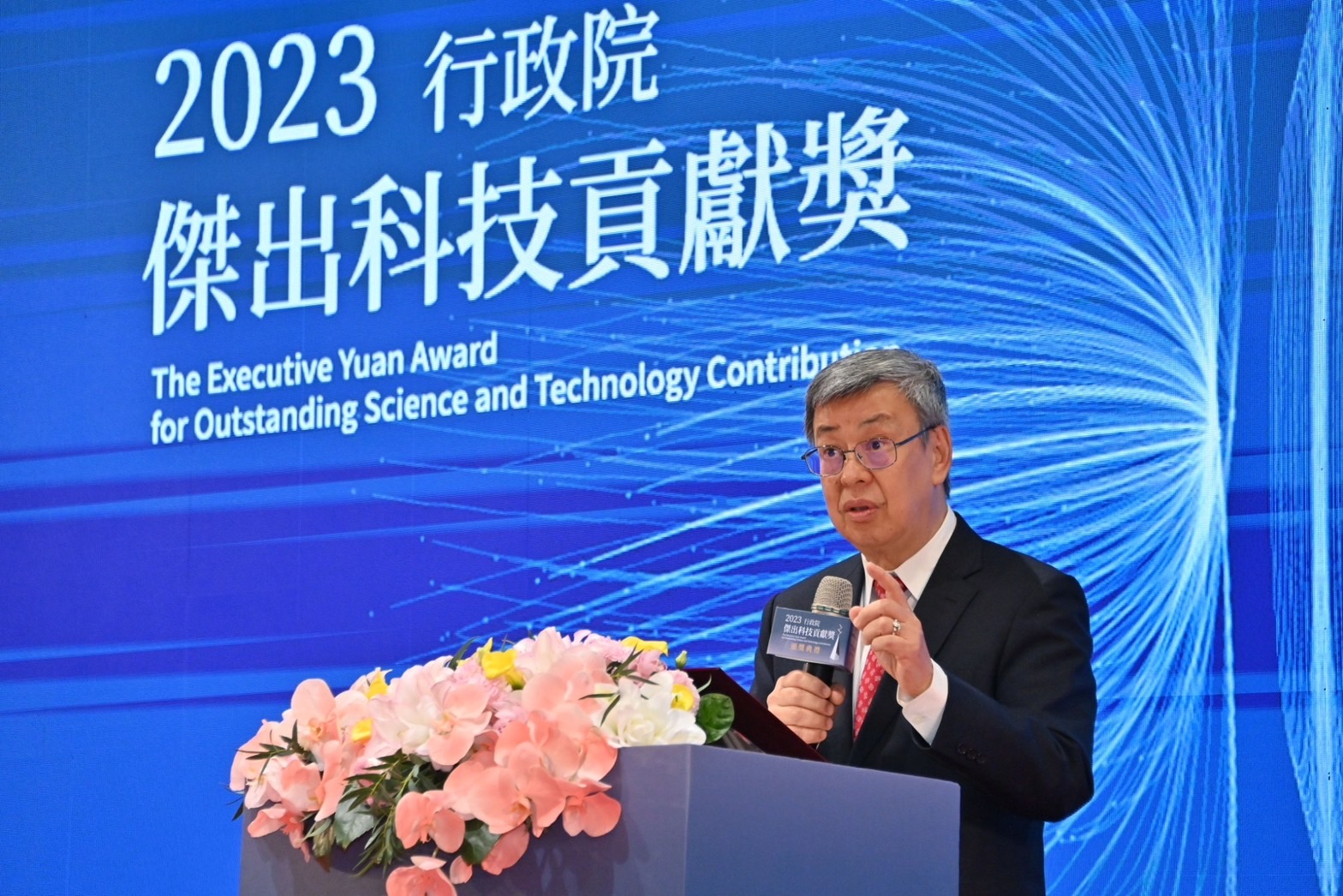 行政院長陳建仁今(6)日出席「2023年行政院傑出科技貢獻獎」頒獎典禮,肯定並感謝4位得獎人在各自專業領域傑出的研究成果,對全世界科技發展帶來卓越貢獻。院長強調,優秀人才是厚積國家科研實力,讓臺灣在科技研究、產業創新等領域持續向前邁進的關鍵因素,政府推動國內科研發展及人才培育向來不遺餘力,明(2024)年政府整體科技預算更編列超過1,500億元,比今(2023)年成長18%。院長期盼大家一起努力,讓臺灣科技發展持續向前邁進,成為全世界楷模典範。