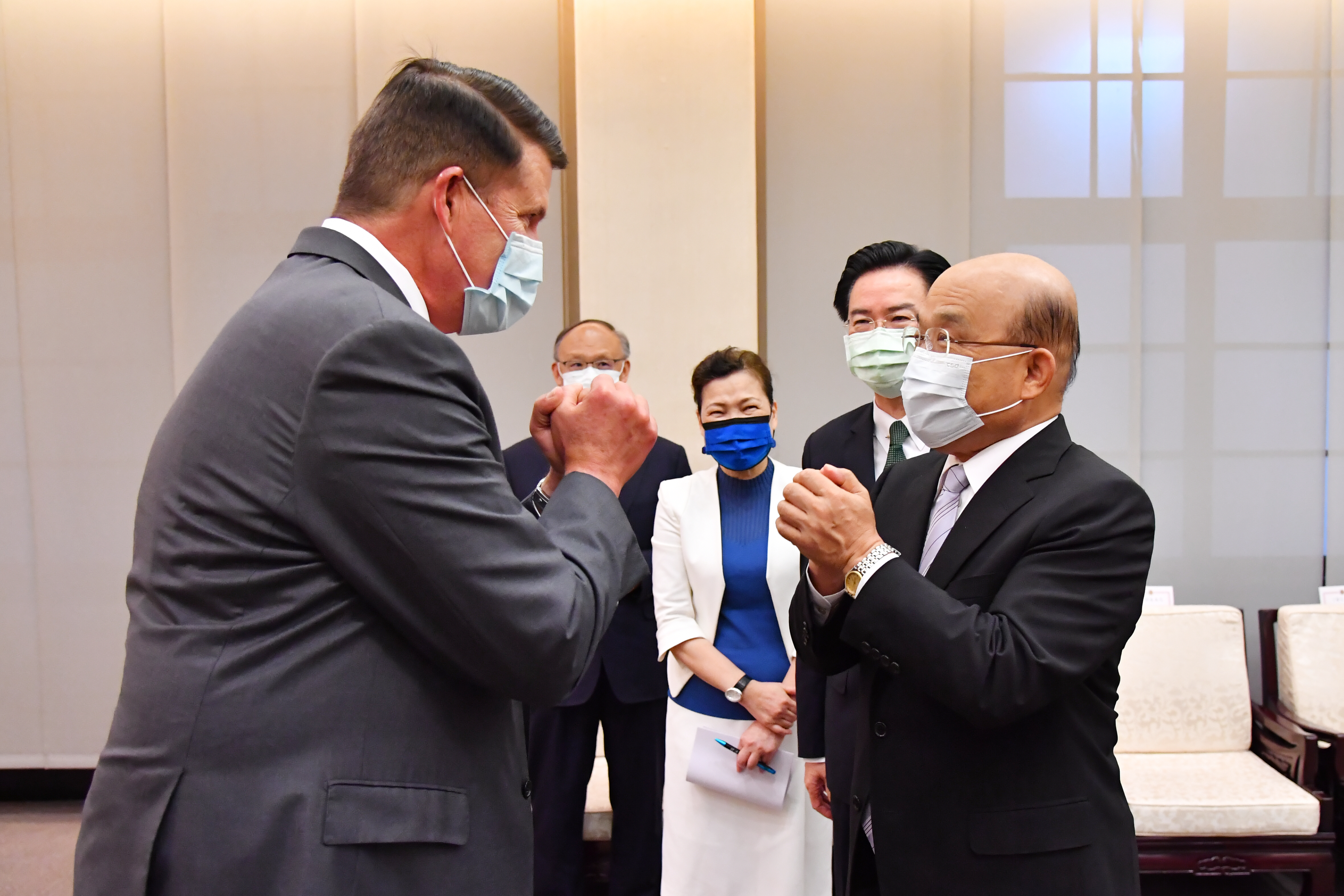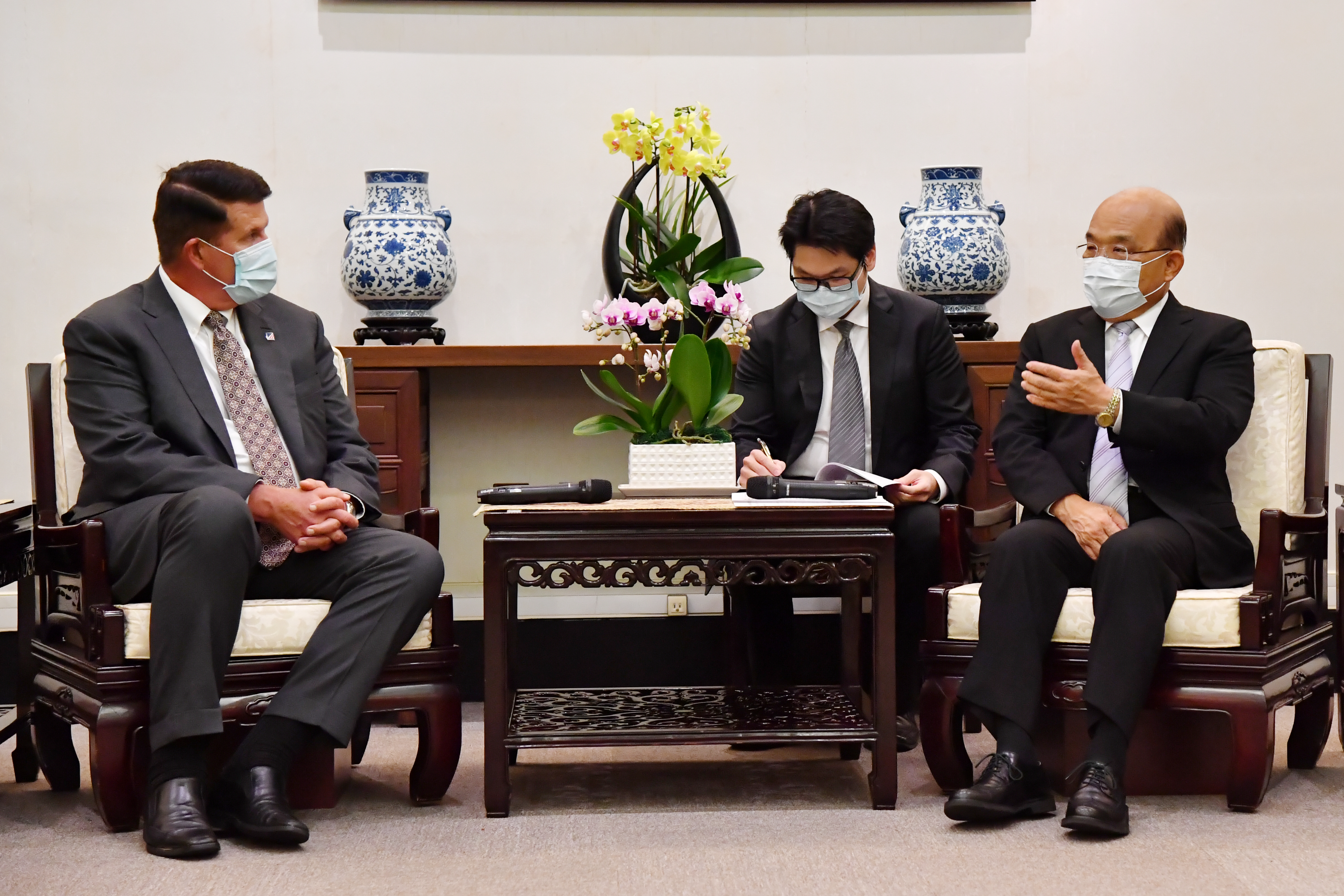 行政院長蘇貞昌今(18)日下午接見美國務院主管經濟成長、能源暨環境次卿柯拉克(Keith Krach)一行,就臺美共同面對的挑戰、經濟相關議題及未來合作交換意見。