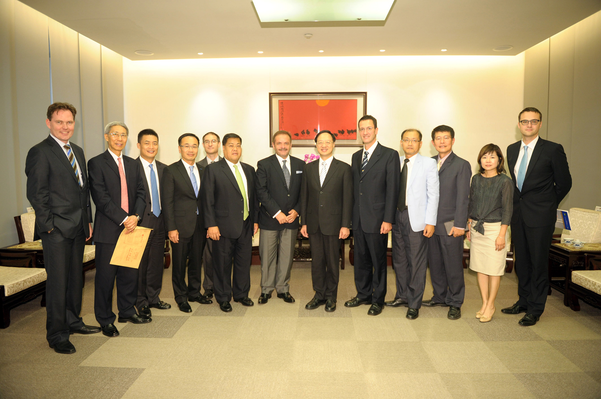 行政院長江宜樺今(12)日接見歐洲在臺商務協會一行時表示,中華民國是一個規模不大的經濟體,但我們試圖用自由開放的精神融入國際社會。在過去半年多來,包括今年3月與美國恢復TIFA(臺美貿易暨投資架構協定)談判、6月與中國大陸簽署兩岸服務貿易協議、7月與紐西蘭簽訂臺紐經濟合作協定等,這些具體作為都可看出我國追求自由化與國際化的努力。