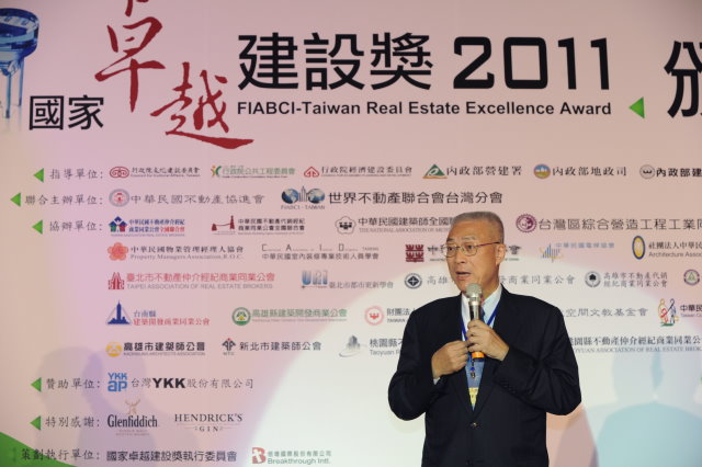 行政院長吳敦義今(10)日出席「2011國家卓越建設獎頒獎典禮」時表示,國家對卓越建設應賦予高度意義與尊敬,每棟建築物不僅是業主理念的顯現,更是設計者終生核心的價值,不但要讓使用者長久保持愉悅舒適,還要與生態、歷史、人文及社會關懷互相結合。