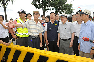 劉院長說,南投縣災區台21線道路遭嚴重破壞,應採「路堤共構」方法以加速修建,上游砂石整治由經濟部水利署協助處理;另台16線問題不斷,是否係水路問題?請經濟部水利署會同行政院公共工程委員會共同研議解決方案,目前台16線災後整建工作國防部亦參與空援協助。