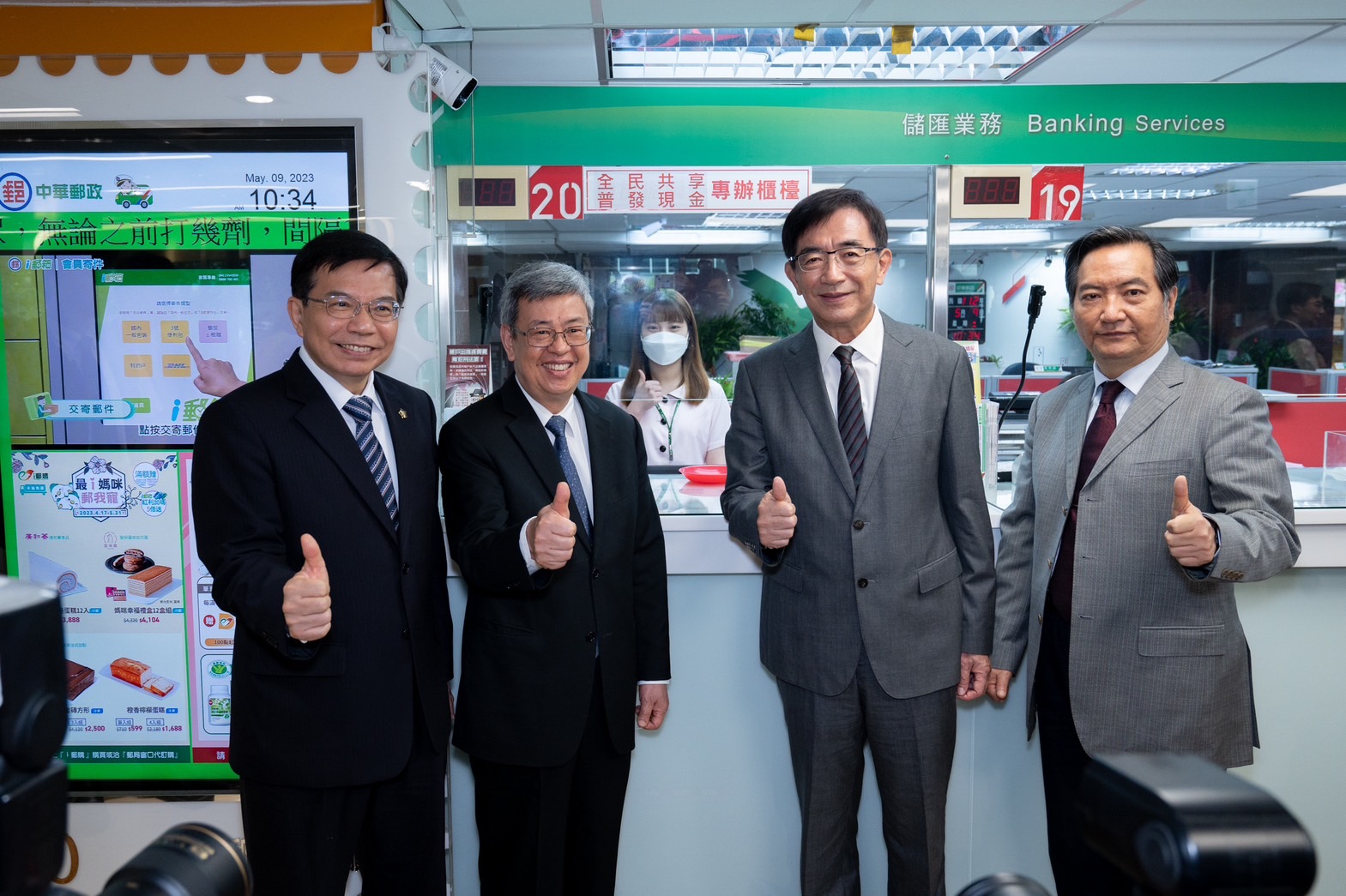 陳院長強調,普發現金工作能夠順利推動,要感謝交通部、中華郵政公司等諸多單位團結一致、共同合作,提供民眾更便利的服務,並善盡社會責任,落實普惠金融的精神,尤其郵局服務據點多,且同仁服務態度親切,願意展現一顆溫暖和關懷的心,投入有溫度的無障礙友善服務,讓每一位前來郵局辦事的民眾皆能有賓至如歸的感受,相當不簡單。陳院長也藉此機會向所有郵局同仁說聲「你們實在太棒了,有你們真好!」。