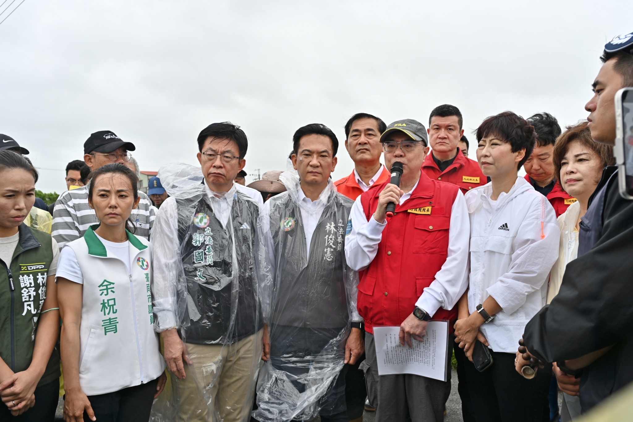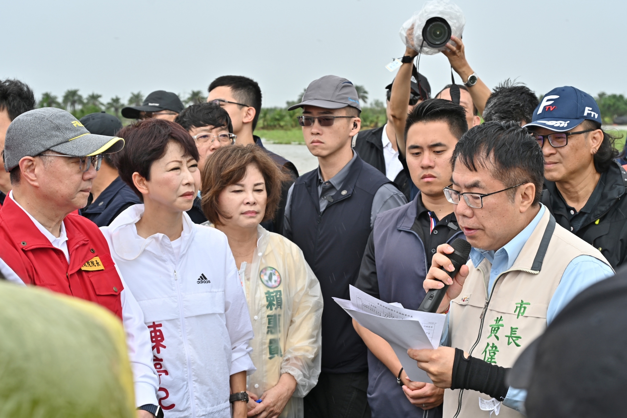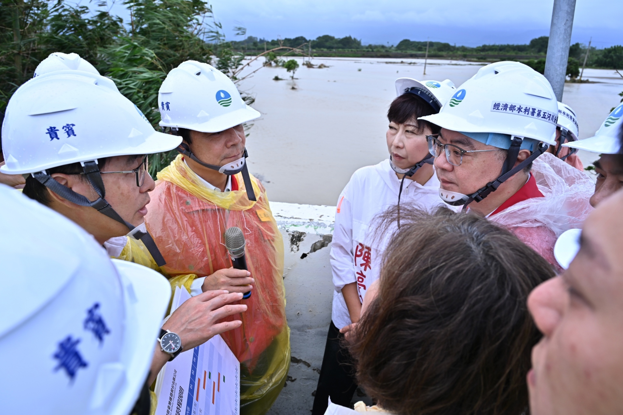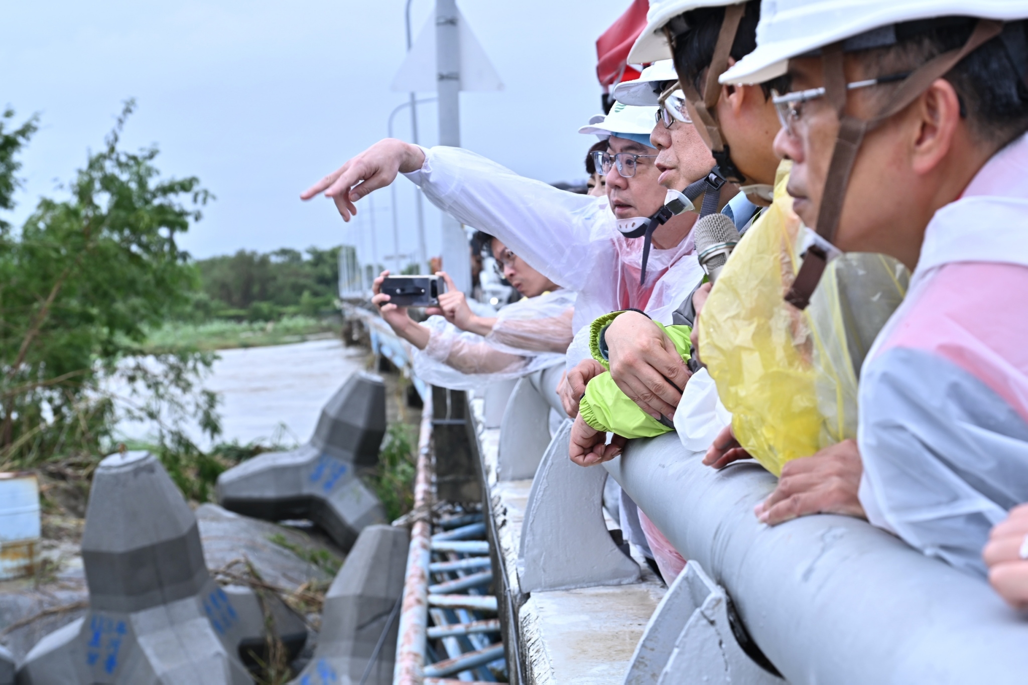 致詞結束後,卓院長偕同行政院陳世凱發言人、雲嘉南區聯合服務中心劉米山執行長、內政部馬士元次長、經濟部何晉滄次長、林俊憲立委、陳亭妃立委、賴惠員立委、臺南市黃偉哲市長、國營臺灣鐵路股份有限公司馮輝昇總經理等人,在水利署王副署長解說下,一同前往現地視察,瞭解八掌溪橋與堤防銜接處溢淹情形。