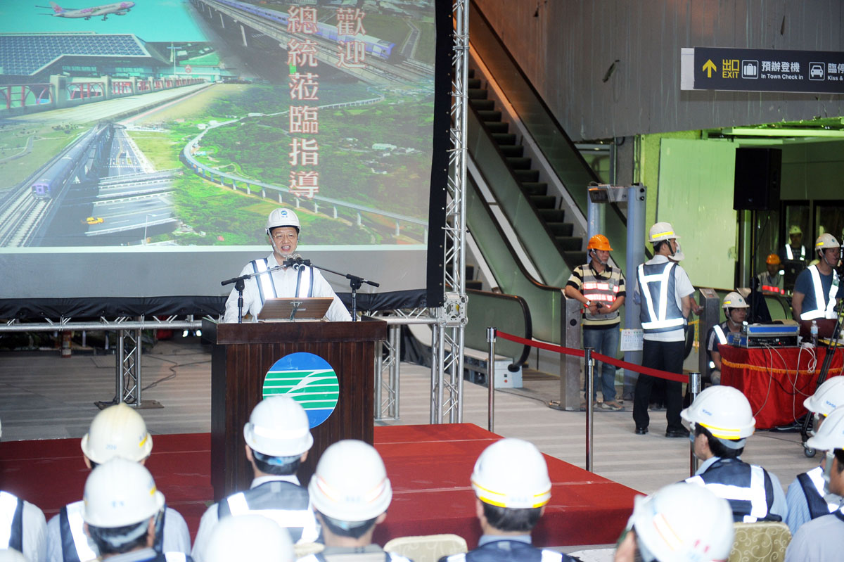 行政院長江宜樺今(25)日陪同總統視察「桃園國際機場聯外捷運系統建設計畫-臺北車站(A1站)」,除了肯定機場捷運施工團隊的努力,也期勉團隊一定要把機場捷運工程做好,讓臺灣驕傲地向世人展現一流的捷運交通網運輸環境。