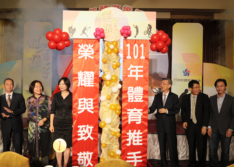 行政院長陳冲今(7)日出席體委會主辦的「101年體育推手獎表揚典禮」,特別感謝所有支持體育發展的企業、團體和個人,並表示政府已通過「運動產業發展條例」,希望在稅制、融資、信用保證等方面協助支持運動發展的推手,讓推手背後還有更多推手,大家一起來推動體育的發展。