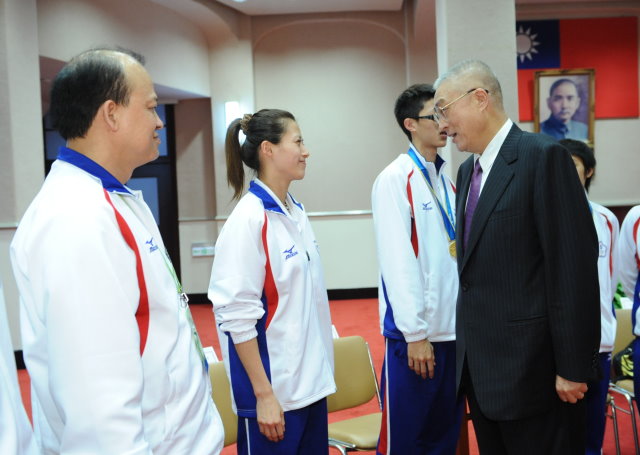 亞運中華代表隊部分選手於今天晚間返國,吳院長特別指派行政院副院長陳冲率體育委員會副主委陳士魁及中華奧林匹克委員會代表前往接機,隨後在行政院接見慰勉亞運代表隊副團長陳建平、總教練劉慶文、金牌選手得主黃顯詠、魏辰洋、郭柏成及跆拳道選手楊淑君等返國的中華代表隊一行人,並給予鼓勵。