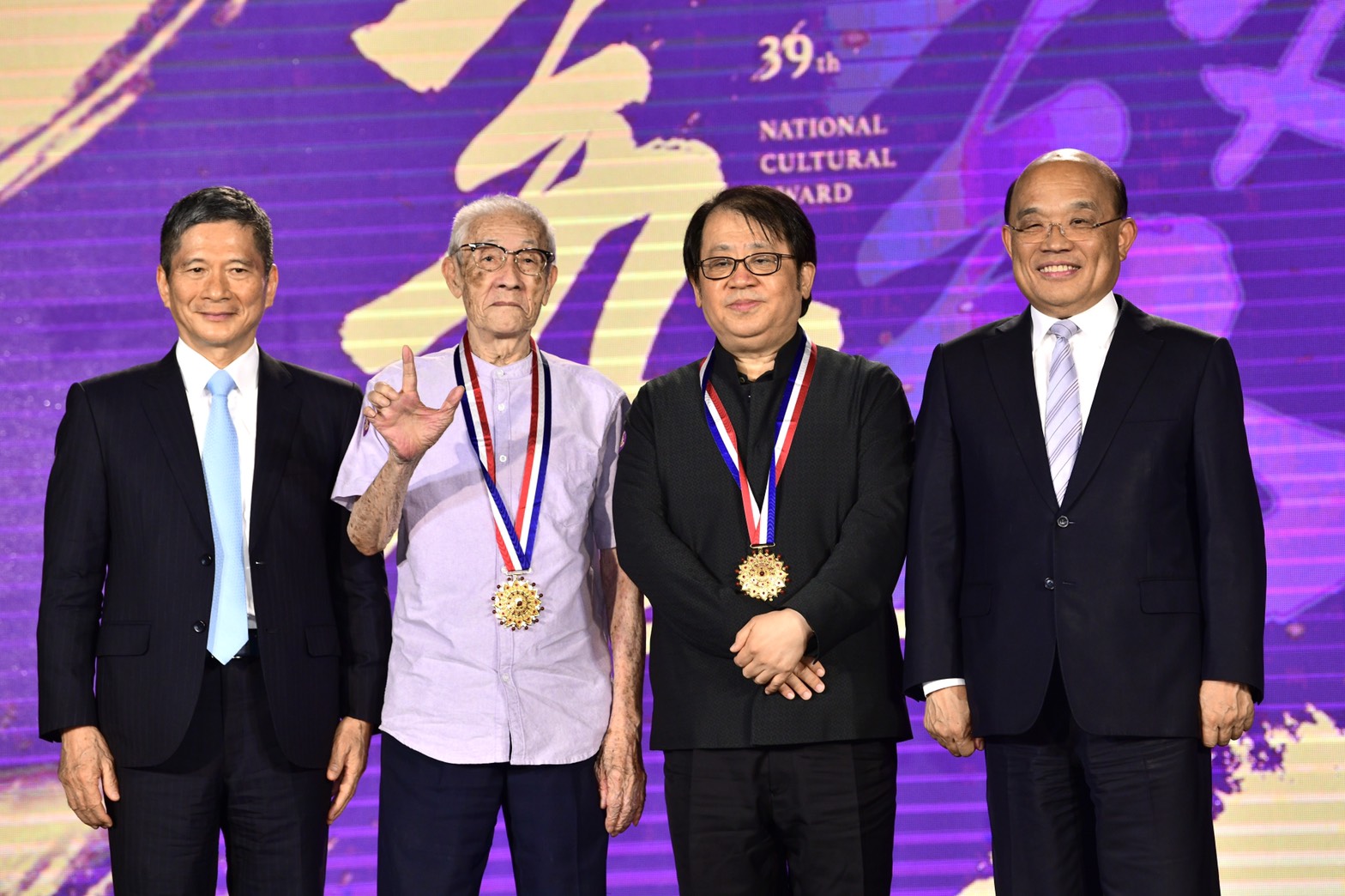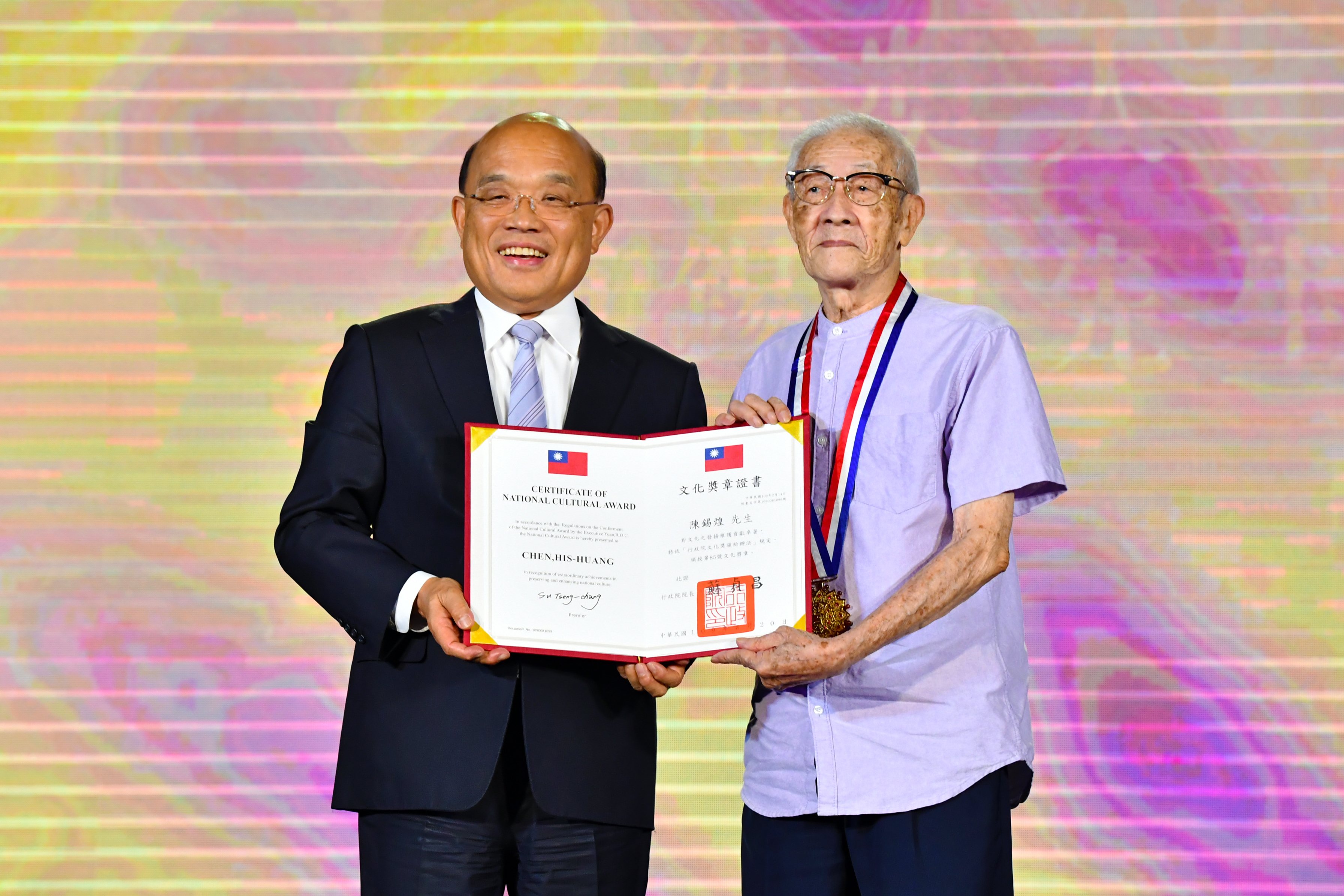 蘇院長強調政府以最高的獎項對陳老師與朱老師表達敬意,也凸顯蔡英文總統上任以來非常重視文化。文化部的預算從每年200多億元提升到400多億元,不僅展現蔡總統的誠意,也可見政府在經費有限的情形下,仍會為文化加油、添柴火,希望文化「更旺」,希望大家一起努力讓臺灣更好。政府也感謝今天在座的許多文化人,從不同領域豐富了臺灣的文化生活造詣,對此表示最高的敬意。