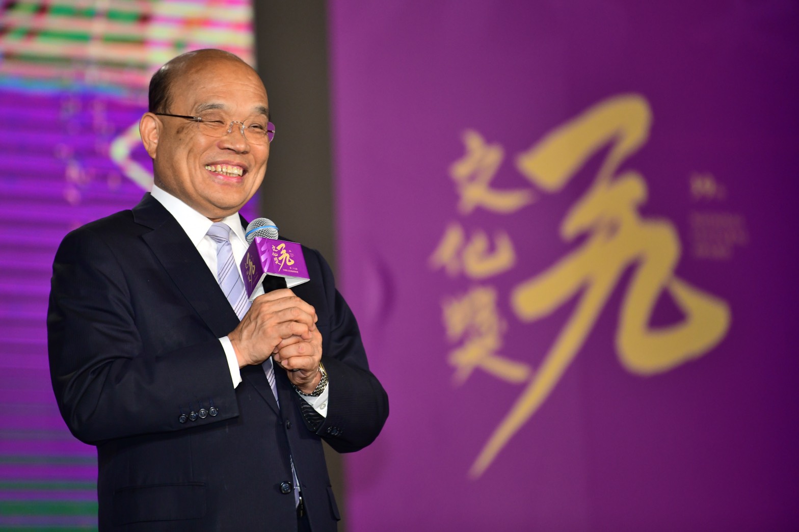 蘇院長表示,文化是國家的根,也可看出國家的水準;而國家可以用政治力量打壓文化,就像早年政府壓制臺灣的母語、傳統戲與各種文化活動。今天政府用最高的誠意,頒發國家最高的文化獎項給兩位傑出的受獎人,一位是傳統布袋戲的陳錫煌老師;另一位是打擊樂的音樂人朱宗慶老師。兩位老師在其領域都令人敬佩,他們用一生將精湛的文化技藝豐富了生活,也讓一代一代的學子學習並傳承精湛涵養與技藝,讓臺灣文化更豐富、更令人驚艷。