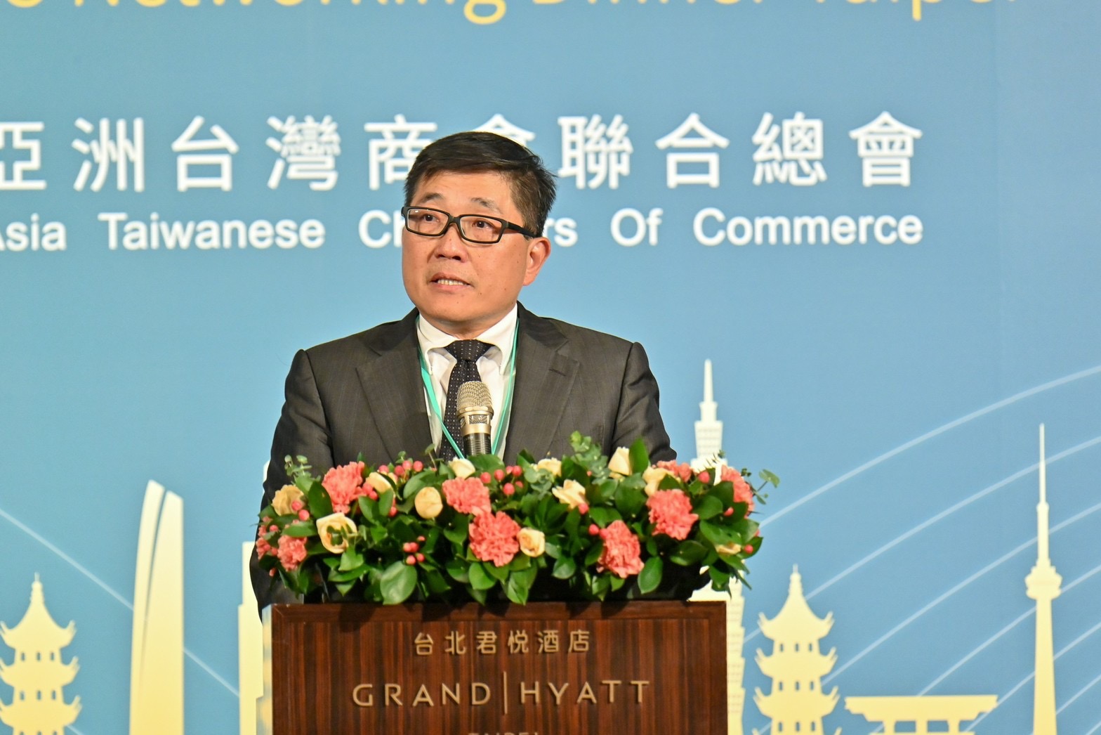 卓院長致詞時指出,他接連兩日出席亞洲台灣商會聯合總會活動,非常高興能再次與大家見面。許多臺商朋友千里迢迢從非洲、歐洲、美洲及大洋洲等僑居地回臺,即便平時距離遙遠,仍心向臺灣。今日齊聚一堂,他感到非常喜悅,也再次歡迎大家回來臺灣。他也是特別來聽取新上任的林凱民總會長表達其雄心壯志、服務熱忱、對臺商朋友的期許,以及對臺灣、對國家的持續奉獻,對此他要向林總會長致上感謝,而林總會長的談話也正是目前政府推動的政策。