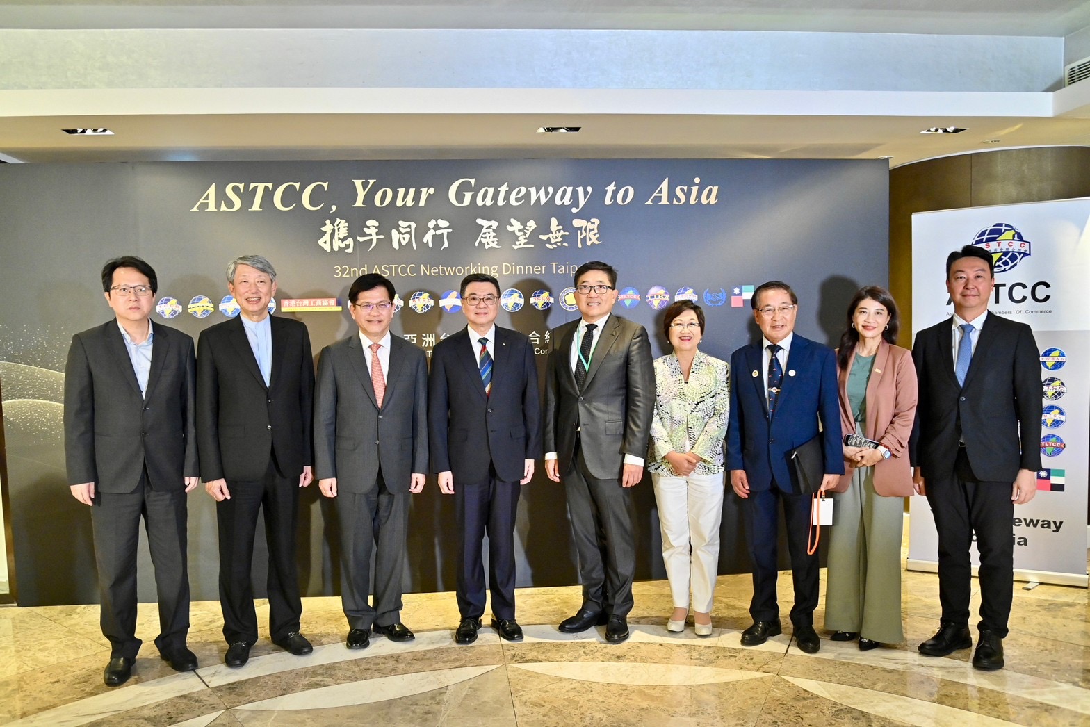 此行,卓院長抵達,先與行政院發言人陳世凱、外交部長林佳龍、經濟部長郭智輝、僑務委員會委員長徐佳青、立法委員邱志偉、林楚茵、林總會長及世界台灣商會聯合總會總會長李天柒一同在亞洲台灣商會聯合總會「攜手同行 展望無限」背板前合影留念。