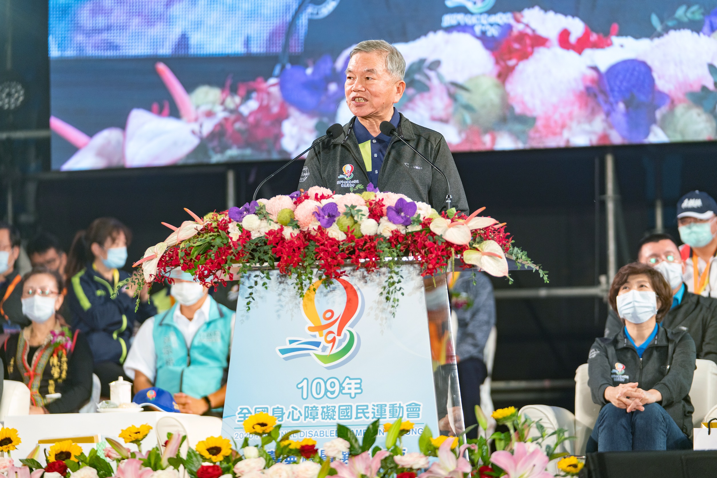 109年全國身心障礙國民運動會於109年11月27日至30日在臺東縣登場,計有21縣市3,500多名隊職員參賽,行政院副院長沈榮津今(27)日代表蔡英文總統出席開幕典禮,他表示,有機會與大家攜手為選手精彩表現喝采,深感榮幸。