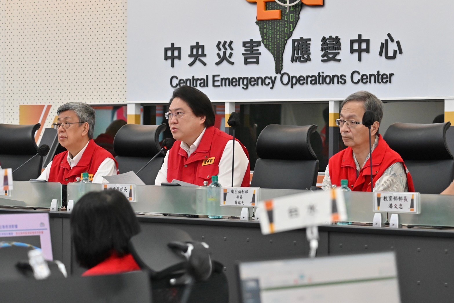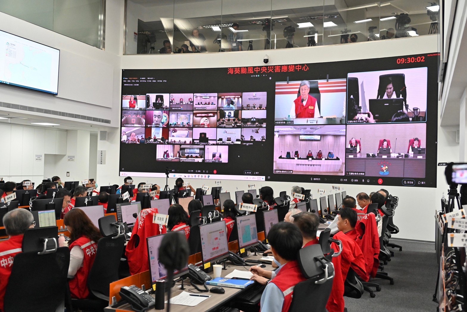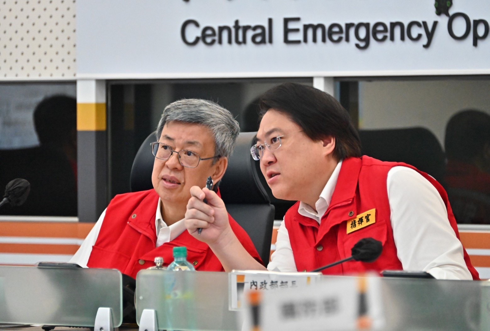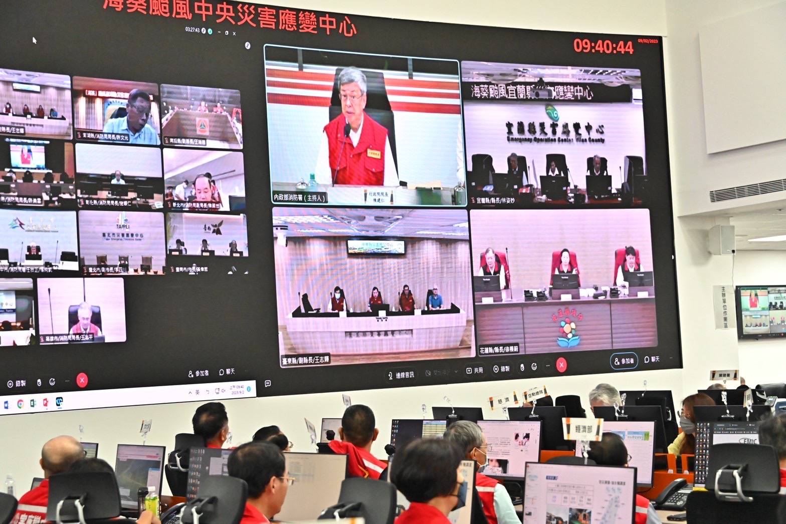 此行,陳院長抵達中央災害應變中心後,首先聽取情資研判組、災情監控及搜索救援組、交通工程組、水電維生組、農林漁牧組、疏散撤離組及收容安置組等報告,並於致詞結束後,分別與宜蘭縣林姿妙縣長、花蓮縣徐榛蔚縣長、臺東縣王志輝副縣長等3縣市正副首長視訊連線,瞭解地方因應本次颱風的整備情形。