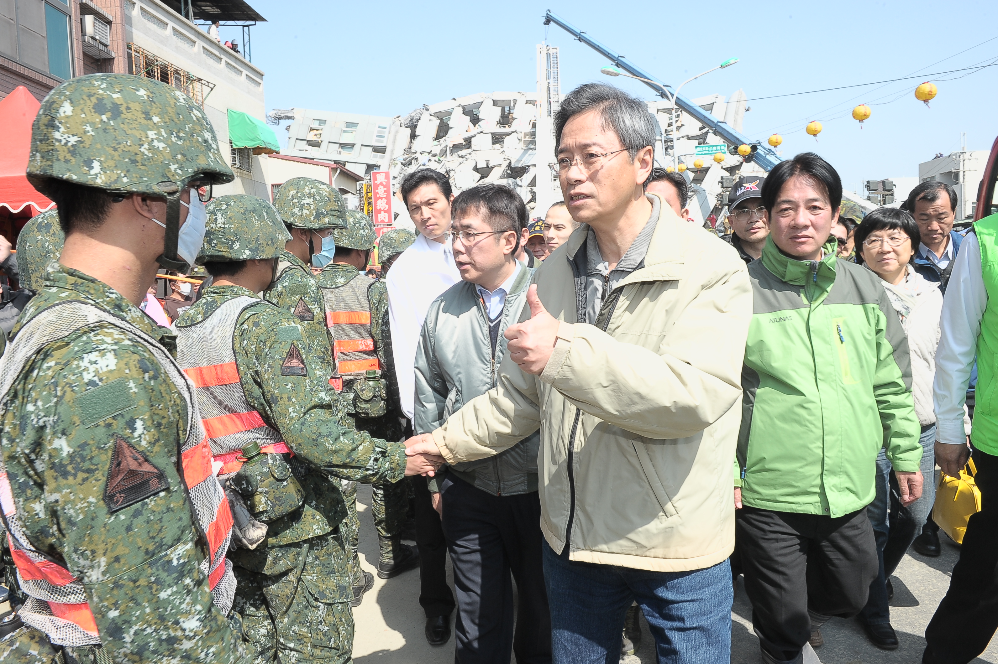 張院長最後又到維冠大樓關心救災情形,他表示,感謝臺南市在救災各個層面上都考慮周詳,市政府是救災的第一線,中央政府會充分支持給予後援。另外,張院長也感謝所有救災同仁不眠不休的付出,並致贈加菜金,為大家打氣,也期勉大家一起努力到最後一分鐘。