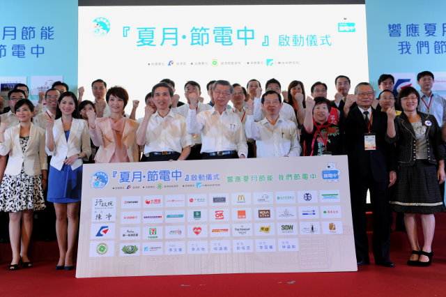 陳院長並與經濟部長施顏祥、能源局長歐嘉瑞共同帶領七大連鎖業、餐飲業、金融業、運輸業、志工及宗教團體代表,依序上台張貼企業標示,認同「夏月.省電中」行動,並透過宣誓宣告節能決心,呼籲全民響應。