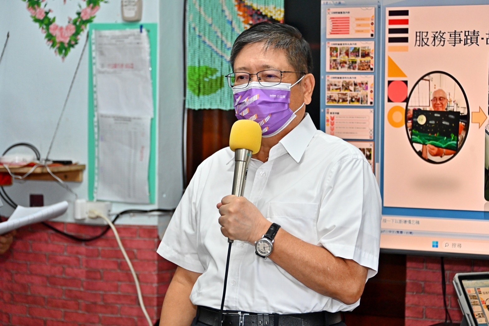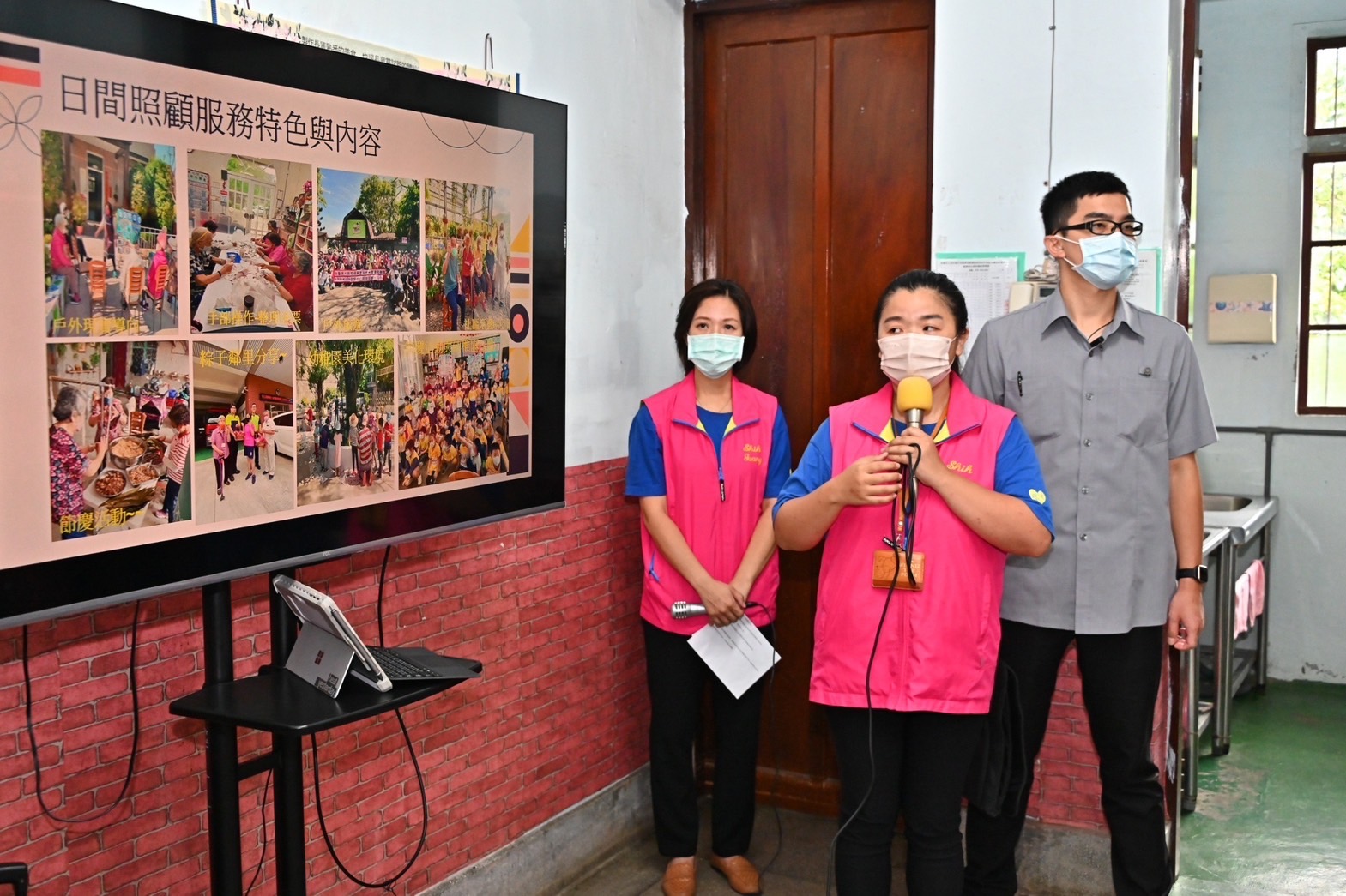 此行,陳院長先聽取橫山日照中心業務負責人羅姵筑簡報該機構服務特色及營運概況,並於致詞結束後,逐一參觀活動室、教堂及日照活動空間,實地了解該中心為失智及失能長者所安排的講道課程及手作園藝課程進行情形,並與長者互動熱絡。