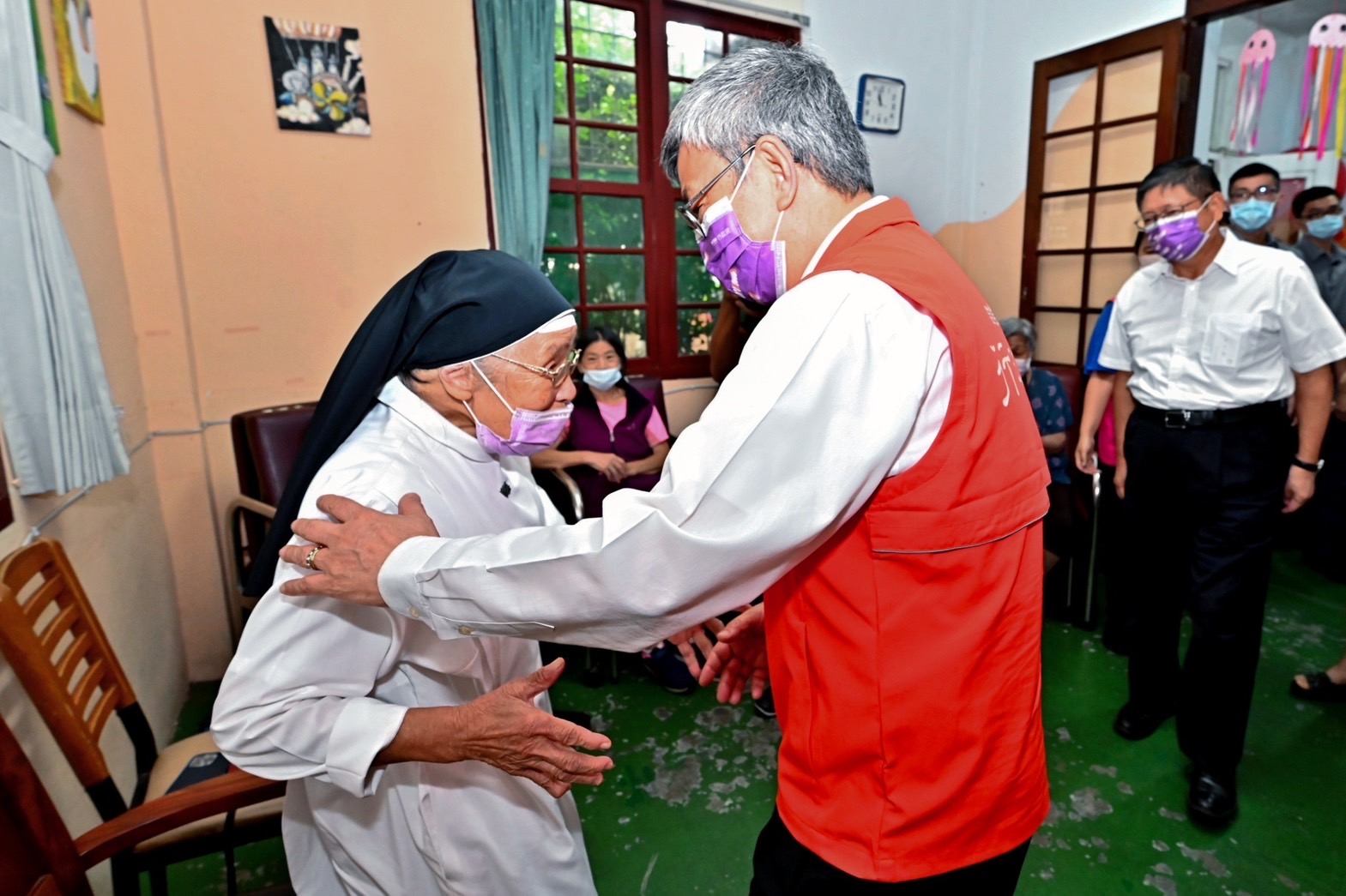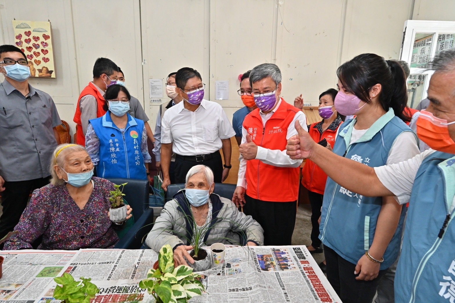 行政院長陳建仁今(8)日前往新竹縣參訪「天主教世光教養院附設私立橫山社區式長照服務機構」時表示,世光教養院利用教堂空間規劃設置橫山日照中心,用心照顧地方長者,為長照服務機構樹立典範。而為進一步照顧長者健康,他也宣布自下(10)月2日起分三階段擴大65歲以上民眾公費接種1劑23價肺炎鏈球菌多醣體疫苗(PPV23)及1劑13價結合型肺炎鏈球菌疫苗(PCV13),以提供更完整的預防效果及保護力。