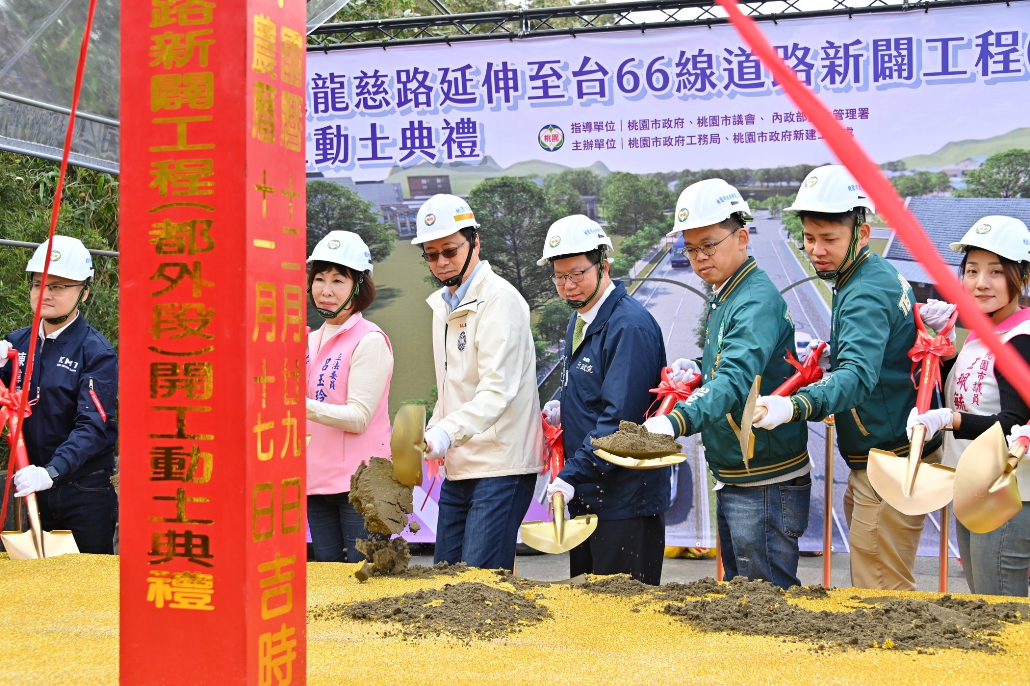 行政院副院長鄭文燦今(29)日出席「平鎮區龍慈路延伸至台66線道路新闢工程(都外段)開工動土典禮」時表示,近年來由於中壢、平鎮地區人口持續成長,市區也隨之往外擴張發展,造成現有道路容量嚴重不足,且該地區以南北縱向道路為主,缺乏東西橫向的聯絡道路,今日龍慈路延伸至台66線道路新闢工程開工動土,象徵增添另一條東西橫向的田園大道,期勉延伸道路工程能夠在3年內如期完工,屆時中壢、平鎮地區道路將南北、東西兼顧,打通任督二脈。