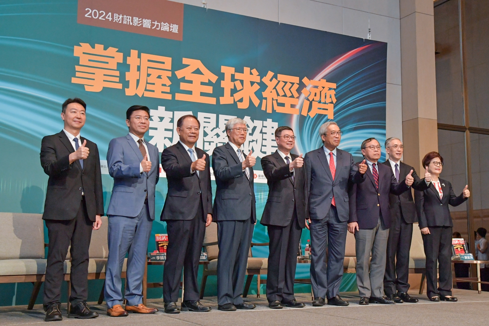 致詞結束後,卓院長與行政院陳世凱發言人、《財訊》雙週刊謝金河社長、日本野村總合研究所首席經濟學家辜朝明、華南金融控股股份有限公司張雲鵬董事長、第一金融控股股份有限公司暨第一商業銀行股份有限公司邱月琴董事長、臺灣銀行呂桔誠董事長、台新金融控股股份有限公司首席經濟學家李鎮宇、富邦金融控股股份有限公司首席經濟學家羅瑋共同合影,為本次論壇揭開序幕。