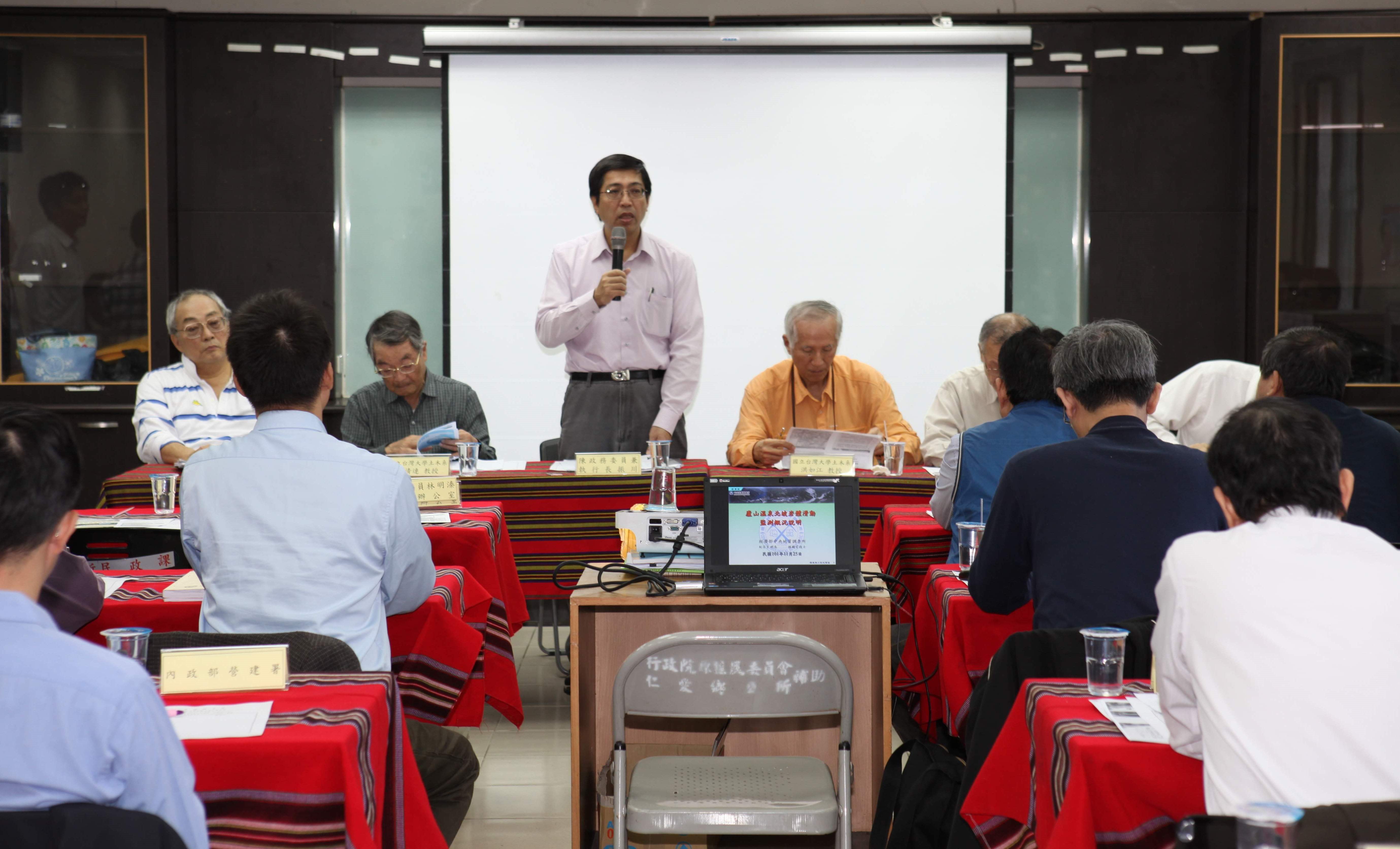 廬山溫泉地區於97年遭受「辛樂克颱風」侵襲,造成嚴重災情,另母安山北坡岩體持續滑動,最大滑動距離超過50公分,又今(101)年6月「610水災」及8月「蘇拉颱風」帶來大雨,塔羅灣溪河水溢堤,多家溫泉旅館一樓遭大水淹沒。陳冲院長高度關切當地安全問題,並因應孔文吉立委、馬文君立委、廖國棟立委、蔡煌瑯立委及林明溱立委等人對廬山溫泉安全性的關心,以及前有居民反映霧社水庫淤積,疑似造成廬山地區淹水,指派行政院政務委員兼重建會執行長陳振川邀集學者專家及有關單位,會勘廬山溫泉安全性以及整治可行性。