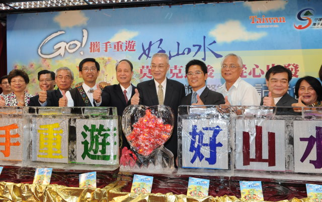 行政院長吳敦義今(6)日出席「GO!攜手重遊好山水記者會」時表示,台灣在重建上的努力是全民用血汗所凝聚的具體成果,代表了台灣族群的和諧,各個不同工作領域、不同縣市、不同年齡都有一樣的愛心,大家共同努力讓台灣重建區綻放更多吸引力,也讓更多國內外人民採購農特產品,實踐台灣民眾相互扶持的愛心。
