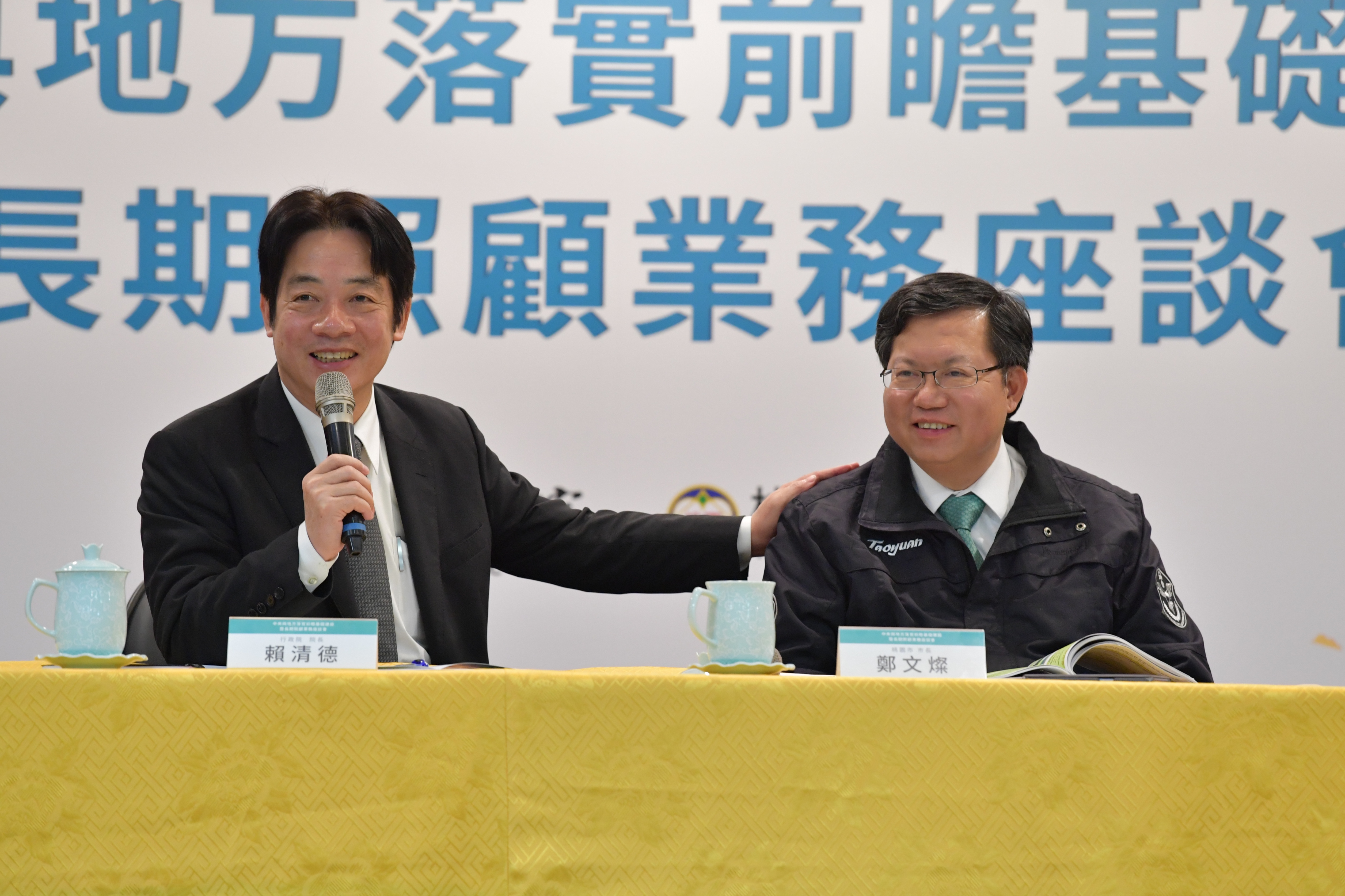 行政院長賴清德今(13)日率行政團隊至桃園市出席「中央與地方落實前瞻基礎建設暨長期照顧業務座談會」時表示,此行是為落實蔡英文總統「前瞻基礎建設計畫」與「長照2.0」兩大政策。桃園市在鄭文燦市長、市府團隊及立委努力下,無論在公共建設、社會福利、出生率、人口數等皆有所提升。行政院會大力支持桃園市,讓最年輕有活力、發展最快的直轄市,擔負台灣未來整體發展更重要的責任。