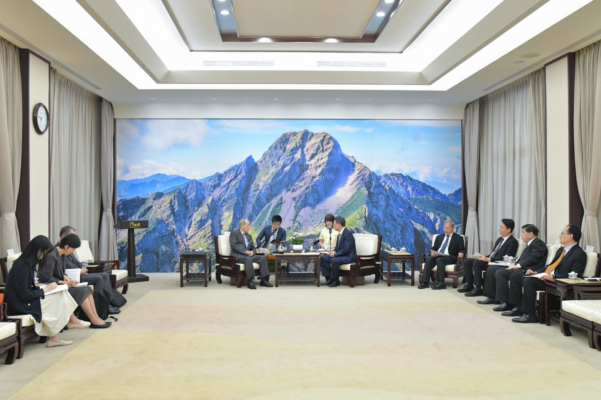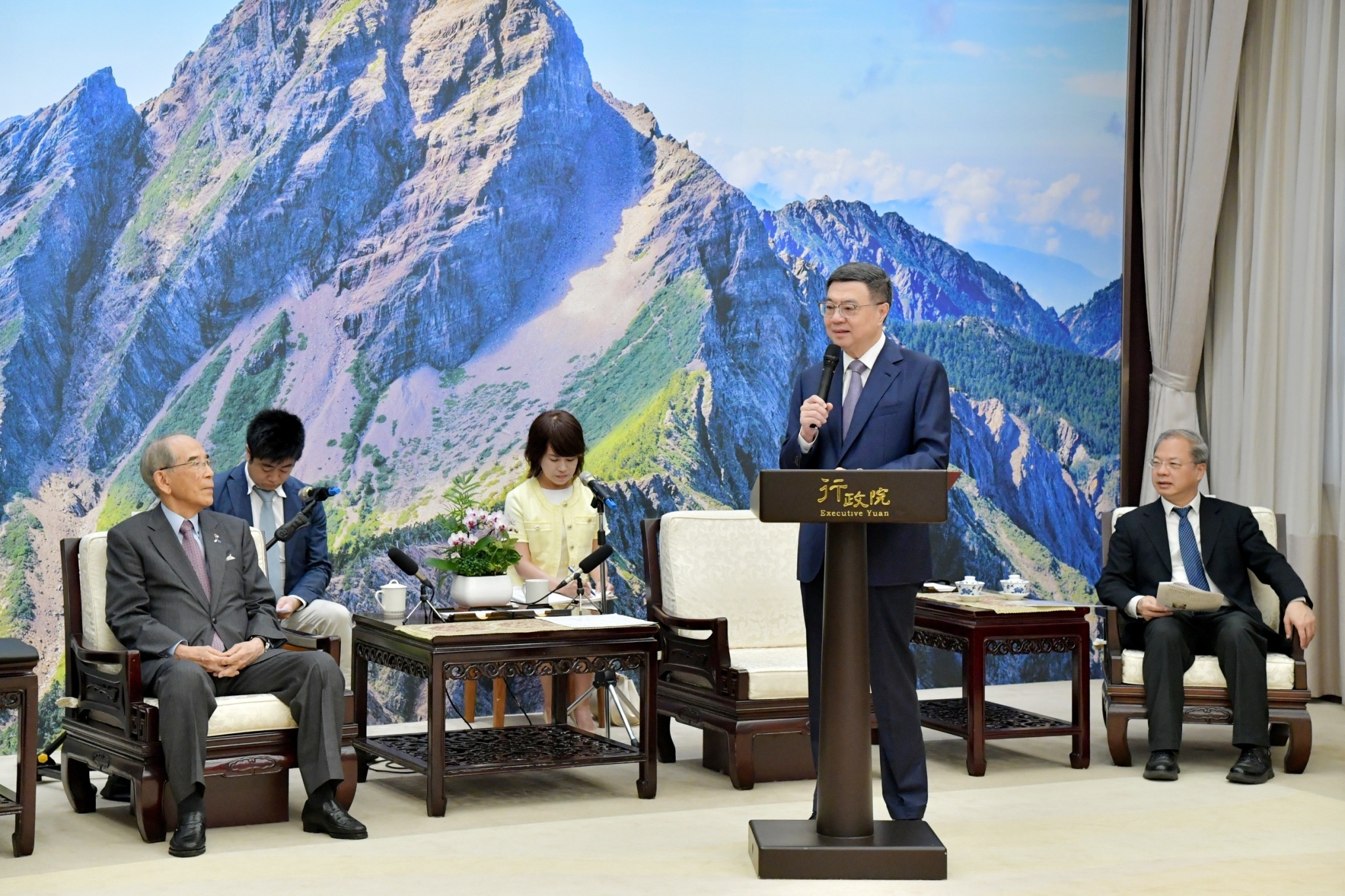 訪賓一行尚包括Resonac控股皆川修名譽顧問秘書及日本台灣交流協會東京本部田中麻美子總務部長,由外交部陳立國次長及日本台灣交流協會台北事務所片山和之代表陪同,前來行政院拜見卓院長,行政院龔明鑫秘書長及陳世凱發言人也在座。