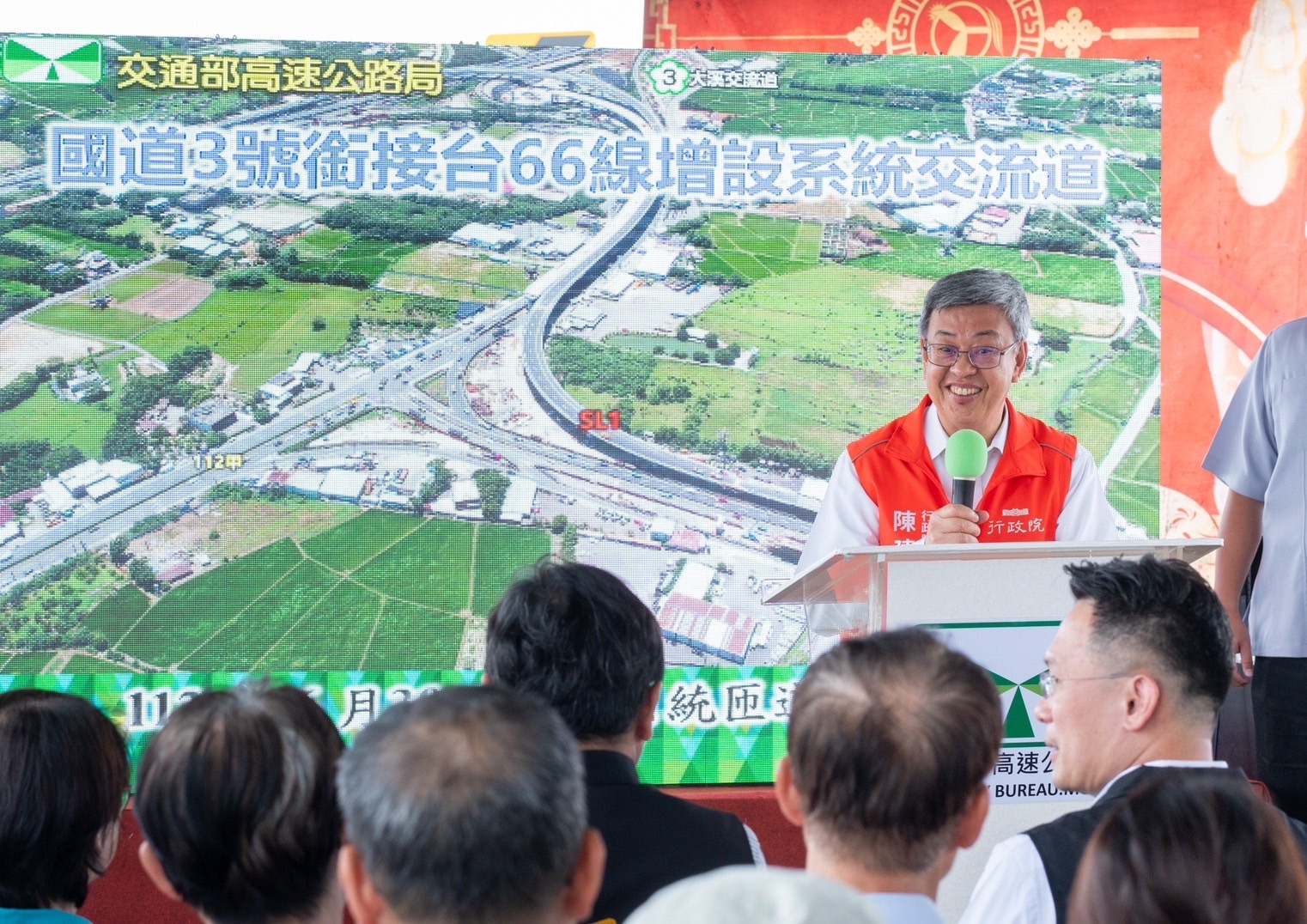 陳院長進一步表示,台66線在20多年前通車時,未設置直接銜接國道3號的交流道,造成市區道路長期壅塞回堵。行政院副院長鄭文燦擔任桃園市長時特別重視此項建設,親自到國發會說明爭取,賴清德副總統也在行政院長任內拍板核定此一建設計畫,投入近45億元經費,由中央負擔43億元,6月30日即將啟動第一階段台66線東行銜接國道3號北入系統匝道通車,另外北入2座匝道、環道預計於今年10月底完成,明(2024)年10月就能全線通車,顯見中央與地方攜手合作、政府與民間共同努力,能將所有建設做得很好。