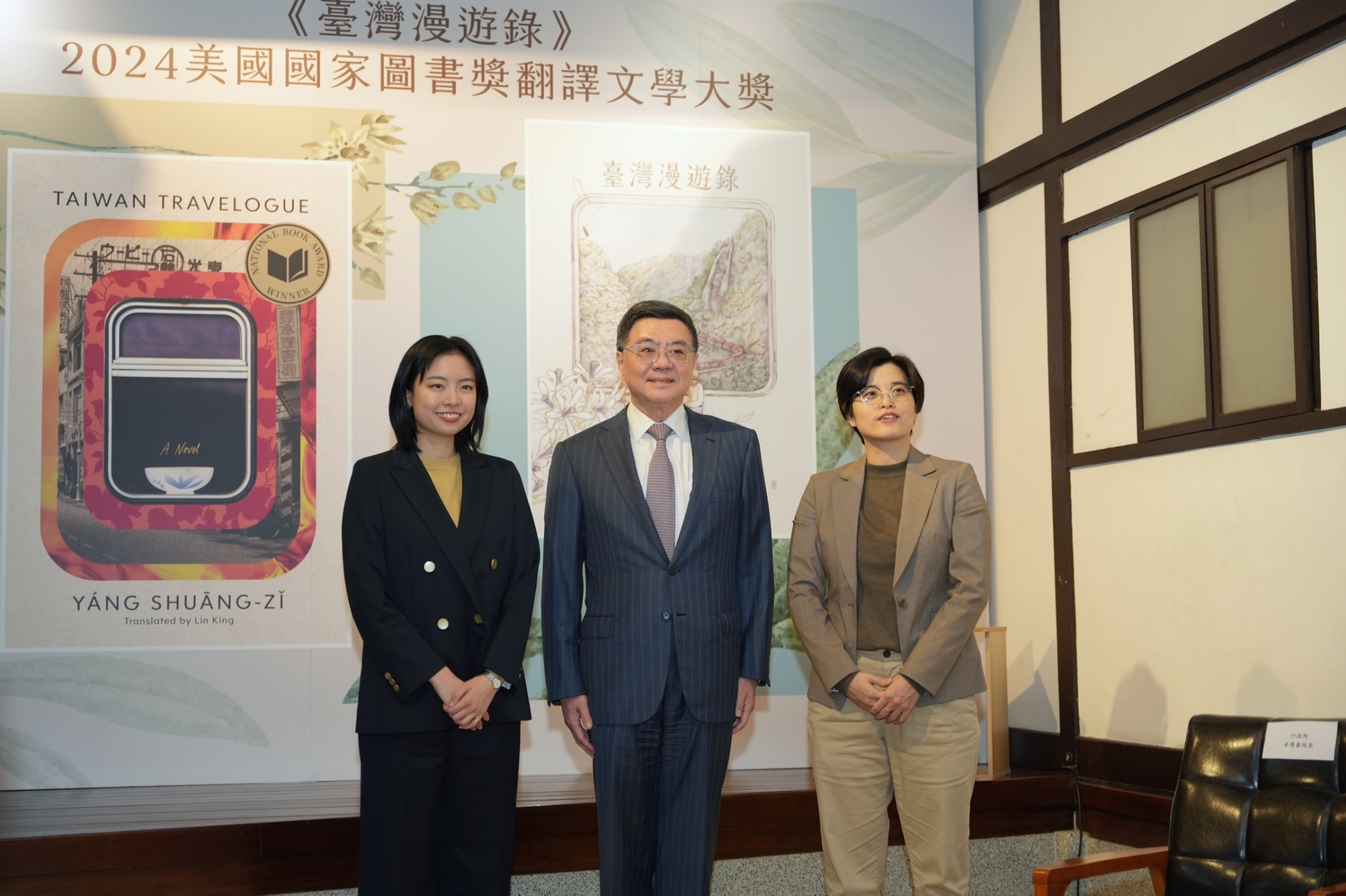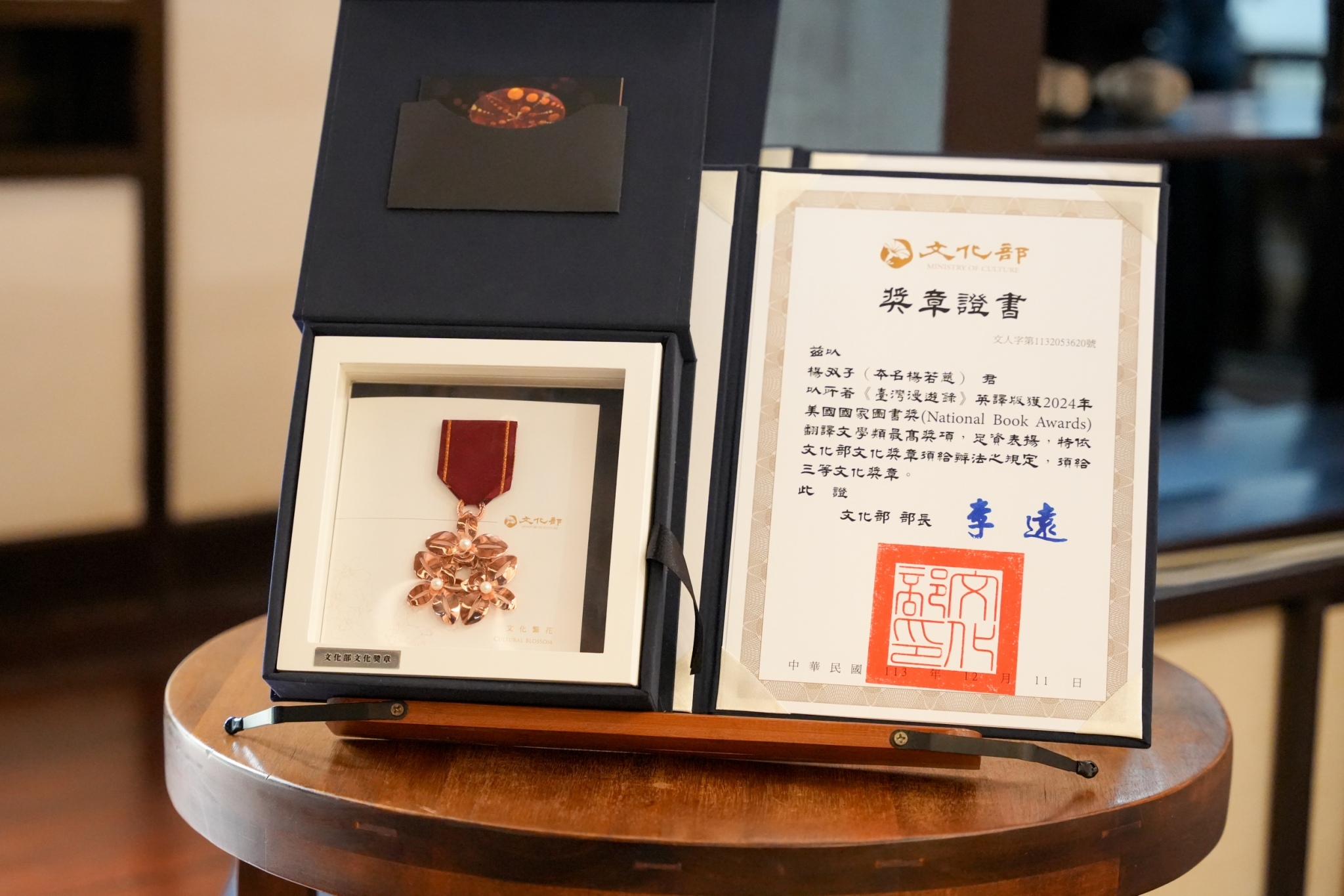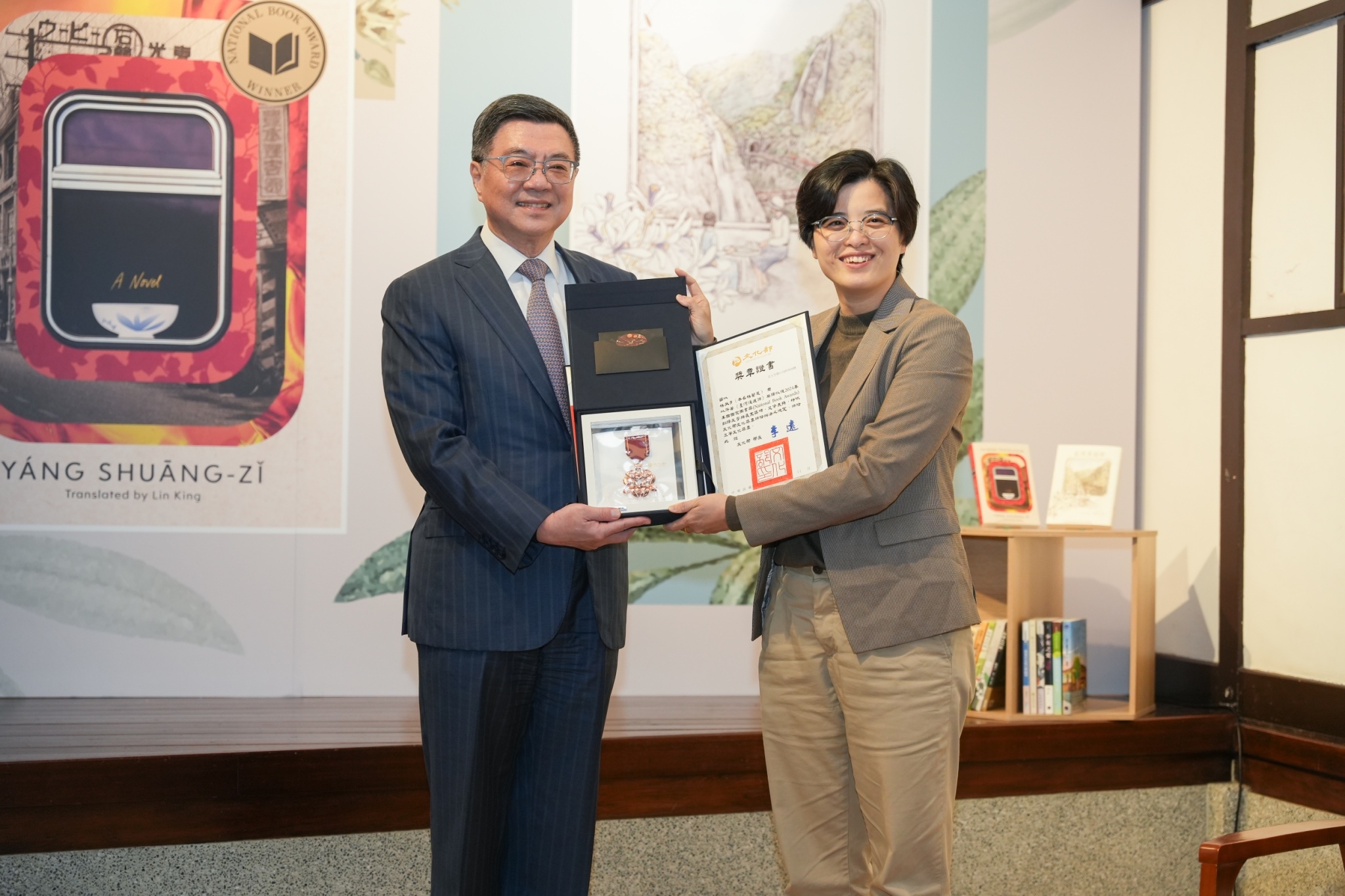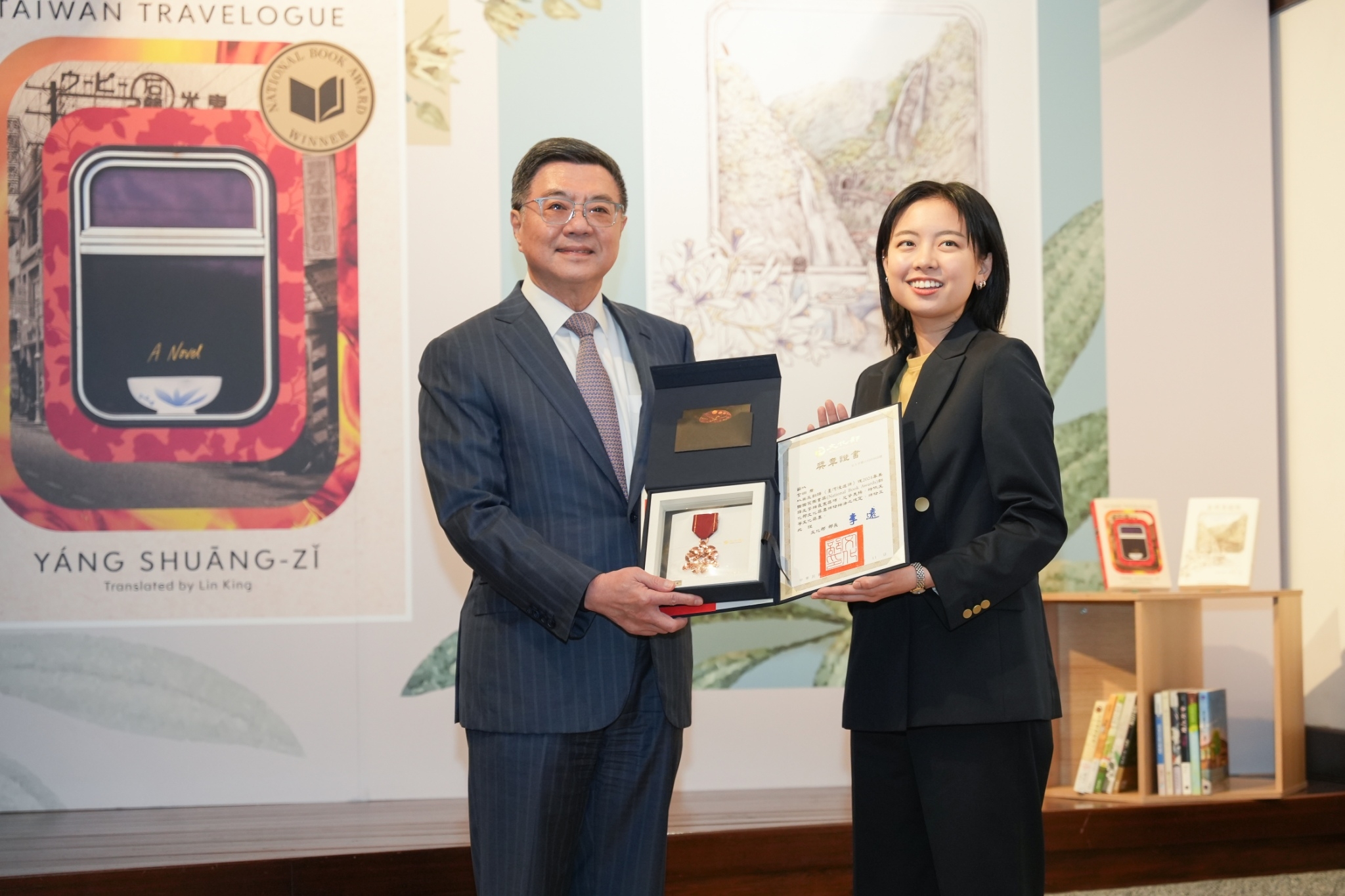 《臺灣漫遊錄》作者楊双子老師及英文版翻譯金翎老師為臺灣首位榮獲「美國國家圖書獎」翻譯文學獎的作家與譯者,行政院長卓榮泰今(16)日特別頒贈文化獎章及國際競賽獎勵金,表彰及肯定她們對於臺灣文學的貢獻,為臺灣社會注入非常強大的力量,期許鼓勵更多臺灣本土作家與藝術家,獲得更多國際注目。