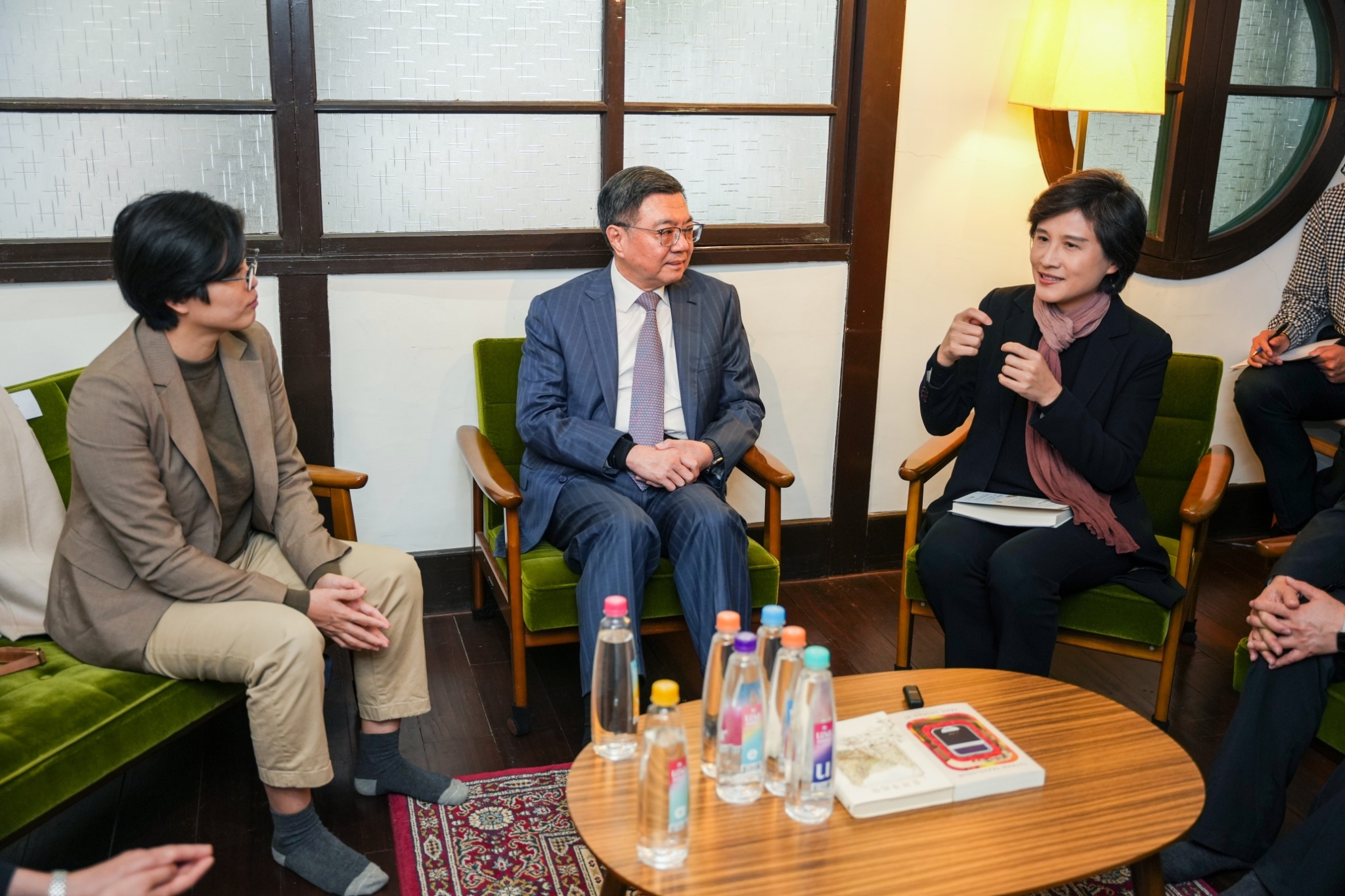 致詞結束後,卓院長與楊双子老師與金翎老師針對《臺灣漫遊錄》一書進行更深入的對談,並獲得兩位老師致贈《臺灣漫遊錄》中英文版。包括行政院鄭麗君副院長、龔明鑫秘書長、李慧芝發言人、文化部李靜慧次長、楊双子老師的伴侶賴庭荷、春山出版社莊瑞琳總編輯也在座陪同。