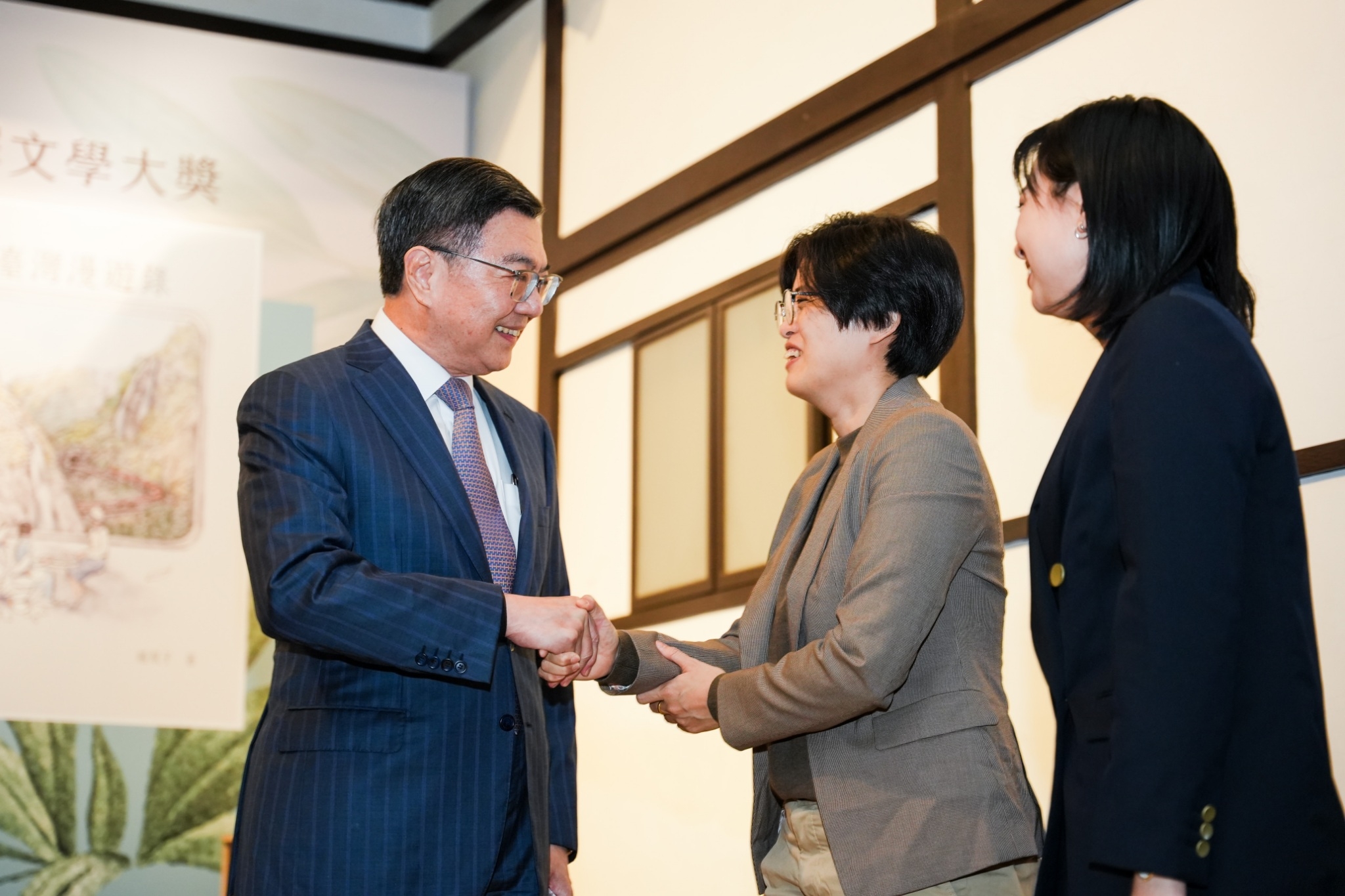 卓院長到場後,首先頒贈文化獎章及國際競賽獎勵金予楊双子老師與金翎老師,並聆聽兩位老師發表得獎感言。隨後,卓院長致詞時表示,行政院相當重視今日活動,他與鄭麗君副院長、龔明鑫秘書長非常難得一同出席,而鄭副院長更是獨具慧眼,在2017年擔任文化部長時,便在臉書上推薦楊双子老師第一本歷史長篇小說《花開時節》,發掘出這位傑出的臺灣之光。此外,今日活動也特別選在臺灣文學基地舉辦,希望藉由表揚楊双子老師與金翎老師的貢獻,進一步培養更多臺灣本土作家與藝術家,讓他們能夠與世界連結。
