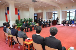 吳院長同時向訪問團說明馬總統執政兩年來的施政成果,他表示,八八水災後,政府迅速展開救援及重建工作,加上多個慈善機構的協助,今年8月8日前將有1798戶永久屋完工,並在9月30前讓所有災民住進永久屋。此外,八八水災後,政府也制定了防救災的標準作業程序(SOP)及各項改善措施,所以國軍都能很快的出動救災。另在H1N1防疫工作方面,台灣防疫的成效與「經濟合作發展組織」(OECD)之會員國相比毫不遜色,國內疫苗接種率排名全球第5名,新型流感死亡率是OECD會員國的3分之1,死亡率全球第三低。經濟方面,我國今年第一季貿易成長是全亞洲第一,洛桑學院公布全球競爭力報告,台灣邁進到第八名,進步最多,其他各項指標也都向上提升,他期許每位團員以台灣為榮,一起來為這塊土地共同努力。