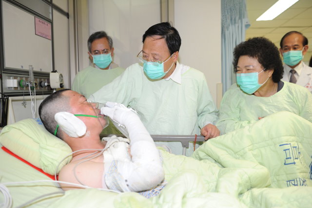 在前往高雄醫學院附屬醫院探視受傷病患時,江院長除了關心高雄醫療院所救援能量是否充足,也感謝高雄醫學院附屬醫院所有醫療同仁的努力,希望能盡全力做好醫療工作。