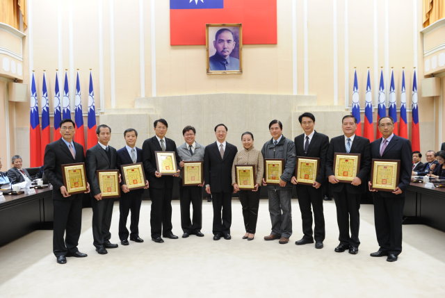 江院長在會報中頒獎表揚102年災害防救業務訪評績優縣市,獲獎的縣市政府包括(名次依序):甲組(直轄市及準直轄市):新北市政府、臺南市政府、臺北市政府;乙組(50萬人口以上):嘉義縣政府、屏東縣政府、彰化縣政府;丙組(50萬人口以下):宜蘭縣政府、新竹市政府、嘉義市政府;丁組(離島):金門縣政府。