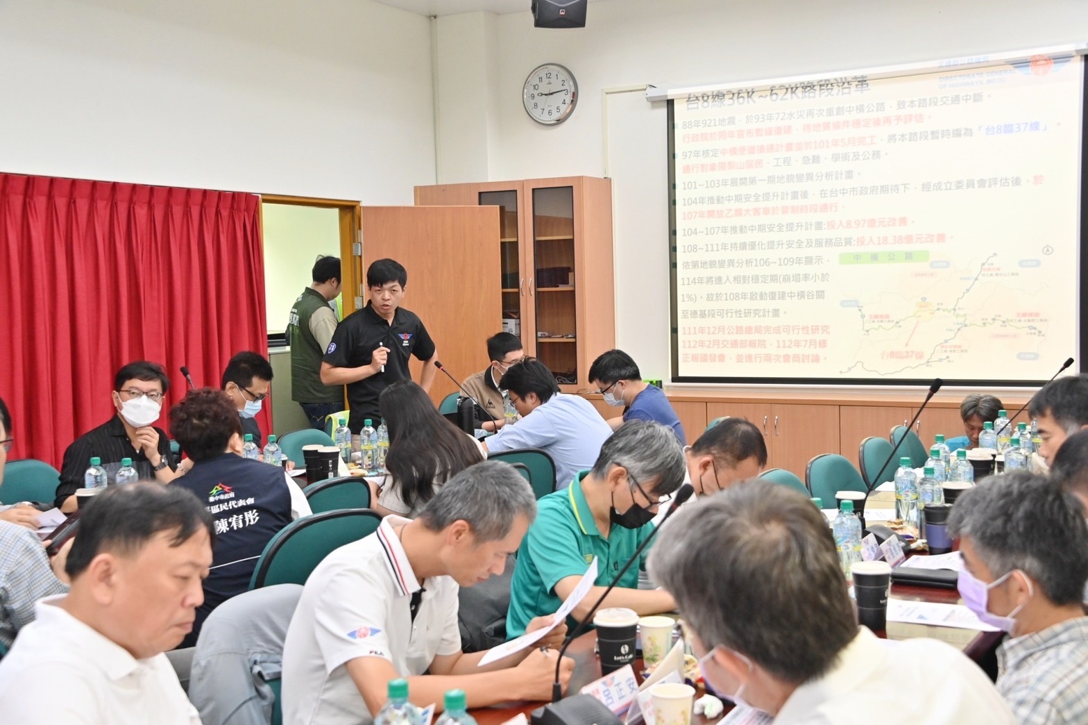 鄭副院長到場後,依序聽取交通部公路局谷關段張裕閔段長、公路局陳文瑞局長與交通部陳彥伯次長簡報「台8線36K~62K(含台8甲線)谷關至德基段復建可行性研究」與使用現況。隨後與立法院蔡其昌副院長、臺中市議會謝志忠議員及蔡成圭議員等在地人士進行意見交流,並於會議後做出裁示。